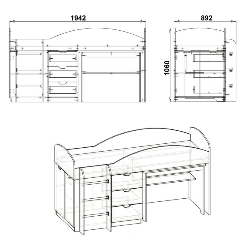 В связи с нестабильностью курса, а так же частыми повышениями цен на фабрике, просьба уточнять цены. С Уважением Интернет-магазин - mebel1.od.ua Наименование: Размер (ШхВхГ): Кровать "Универсал" 892х1060х1942 Проем под матрас: 1910х708х84(224) мм Возможные цвета:
