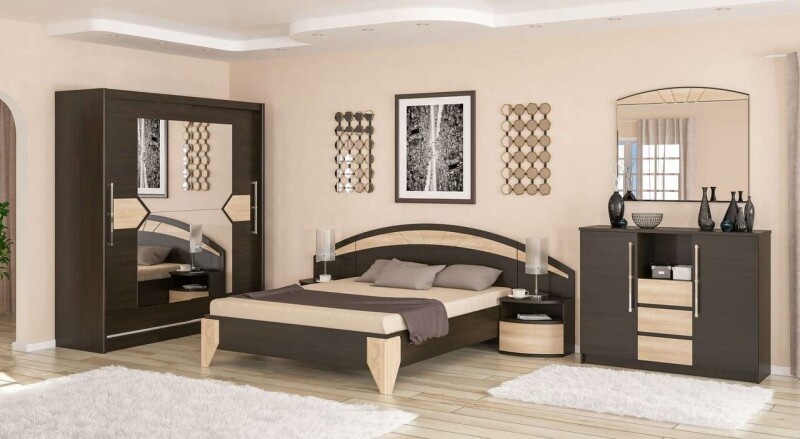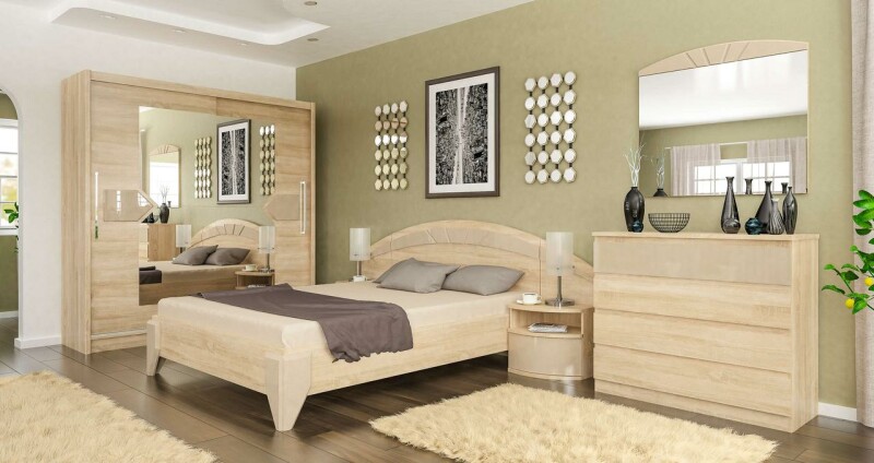 В связи с нестабильностью курса, а также частыми повышениями цен, просьба уточнять цены. Спальня Аляска от Мебель-Сервис - с плавными линиями имеет ряд присущих только ей черт. Спальня Аляска может быть в светлых - дуб самоа или дуб молочный - или в темном цвете - темный венге. Глянцевые вставки капучино МДФ украшают фасады всех предметов из гарнитура Аляска и гармонично дополняют их. Основной чертой спальни, которая отличает ее от других спален, есть ― лаконичность линий, четкость форм, цветовая гамма, которая четко определенна. Вся мебель изготовлена из экологически чистых и безопасных материалов. Мебель идет в разобранном виде, упакована по пачкам. В комплекте идет инструкция по сборке. Характеристики: Размеры (ШхВхГ), мм: 1704х1012х2072. Материал: Корпус ДСП, Фасад лакированный МДФ Стоимость кровати указана без ортопедического вклада под матрас Спальное место, см: 160х200 Цвета: Дуб самоа, Дуб молочный, Венге тёмный, Капучино глянец.