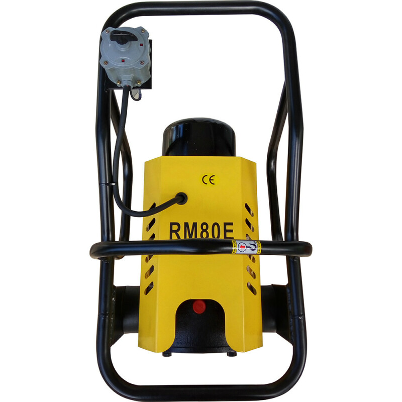 Характеристики: Вибротрамбовка RM80E с электродвигателем 2,2кВт, сила удара 1000кг, рабочий ход прыжка 40-65мм, размер рабочей площадки 310x280мм