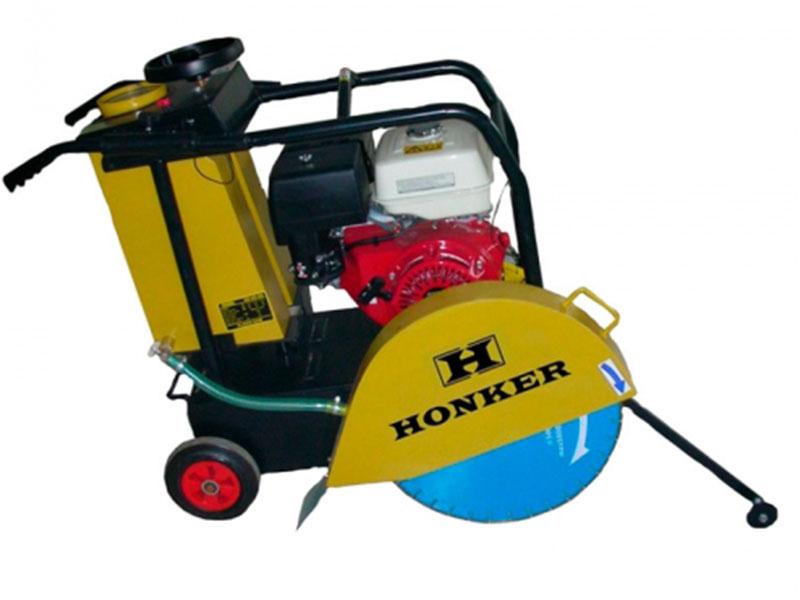 Швонарезчик HONKER T450 имеет ряд плюсов по сравнению с о отбойным молотком, это скорость и ровность выполненной работы, отсутствие силовых нагрузок на покрытие, после чего появляется много трещин. Данная модель предназначена для резки асфальта, бетона и других твердых материалов в частности железобетон, а также различных напольных и плиточных покрытий на основе гранита, мозаичной крошки и других наливных полов. Боковое размещение диска предоставляет возможность проводить работы в труднодоступных местах. Помимо этого, у этого инструмента есть механизм установки необходимой глубины и ручная подача во время выполнения необходимых задач. В комплектацию входит система орошения , а также бак для воды. Его можно легко транспортировать. Мощная стальная конструкция их снижают вибрацию при распиловке. Такое небольшое дорожно-строительное оборудование используется для капитального или ямочного ремонта автомобильных дорог. Рекомендуется применить такой инструмент при вскрытии инженерных коммуникаций, нарезке температурных швов, разделке трещин в бетонных полах и плитах, а также демонтаже разных твердопородных конструкций. Мощный двигатель; Усиленная металлическая конструкция; Система подачи воды; Регулировка глубины реза; Высокое качество изделия; Легкая и быстрая замена алмазного диска; Возможность работать в труднодоступных местах; Простота в эксплуатации.