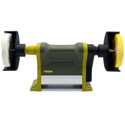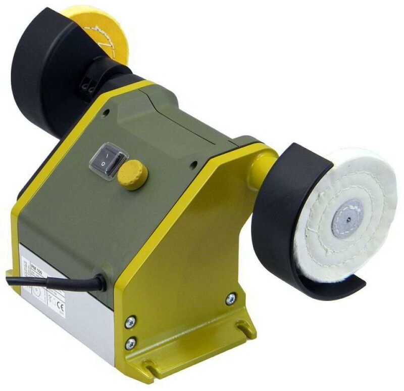Привод зубчатым ремнем. Алюминиевые посадочные подшипников с двух сторон обеспечивают тихую безвибрационную работу. Расстояние между рабочими дисками около 360 мм, регулируемые защитные кожухи. Справа оправка закреплена винтом и может быть снята при использовании дополнительных аксессуаров. Крепится на рабочую поверхность при помощи винтов или прилагаемой струбцины. Комплектуется миткалевым диском (100 х 15 мм), тканевым полировальным диском (100 х 15 мм) и полировальной пастой. Технические данные: 220-240 В, 140 Вт. Бесступенчатая электронная регулировка скорости 1000 - 3100 об/мин. Макс. диаметр диска 4" (102 мм). Габаритные размеры: 360 х 220 х 250 мм. Вес около 5 кг. Изоляция по 1 классу. Характеристики мощность, Вт 140 скорость вращения, об/мин 1000-3100 длина, мм 360 ширина, мм 220 высота, мм 250 вес, кг 5