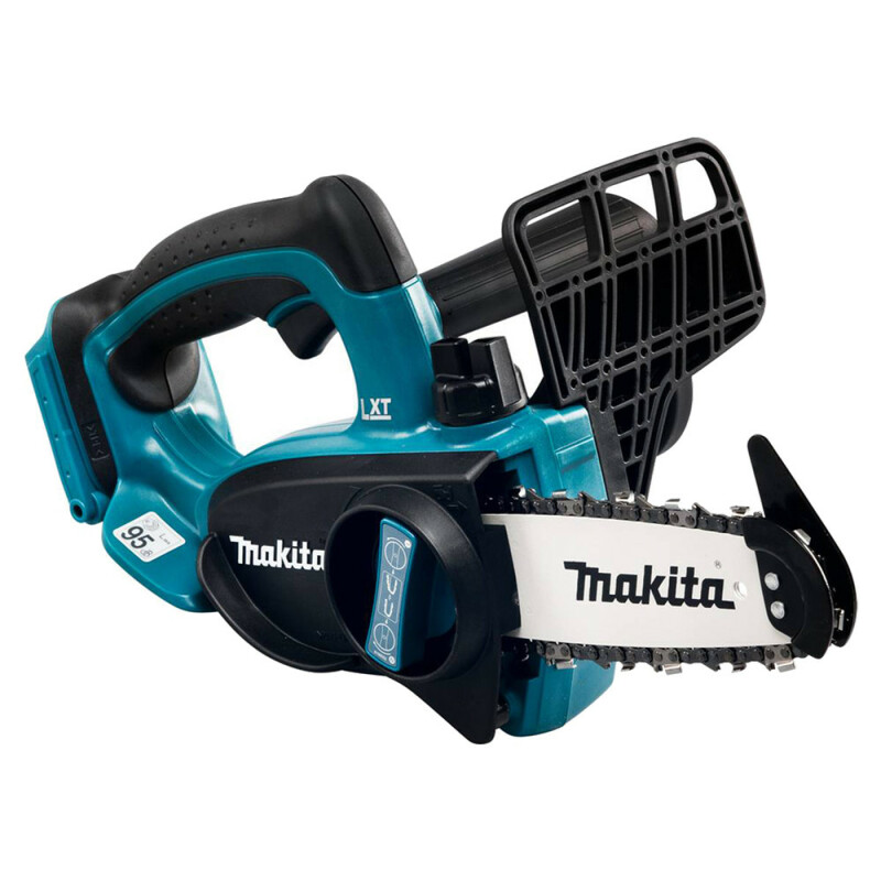 Автоматическая смазка цепи Стопор на концах лезвия помогает избежать опасной отдачи Защита рук и предохранительный выключатель с функцией блокировки запуска инструмента обеспечивают защиту работника Makita DUC122Z - это аккумуляторная цепная пила, предназначеная для распиловки древесины Резиновые вставки на рукоятках гасят вибрацию и позволяют увеличить контроль над пилой Пила оснащена блокировкой от случайного пуска При выбеге цепи срабатывает аварийный тормоз (скорость срабатывания всего полсекунды) Система регулировки натяжения цепи пилы Makita DUC122Z отличается простотой и позволяет заменять цепь без помощи специальных инструментов Технические характеристики Напряжение аккумулятора 18 В Тип аккумулятора Li-ion Шаг цепи 1/4 " Длина распила 115 мм Скорость цепи 300 м/мин Уровень шума: звуковое давление 84,6 дБ(А) Уровень шума: звуковая мощность 92,7 дБ(А) Уровень шума: погрешность (к) 3 дБ(А) Уроень вибрации: пиление 4,3 м/сек² Уроень вибрации: погрешность (к) 1,5 м/сек² Размеры (Д х Ш х В) 422 x 195 x 215 мм Вес в соответствии с EPTA 2,6 кг Обратите внимание, аккумулятор и зарядное устройство в комплект поставки не входят