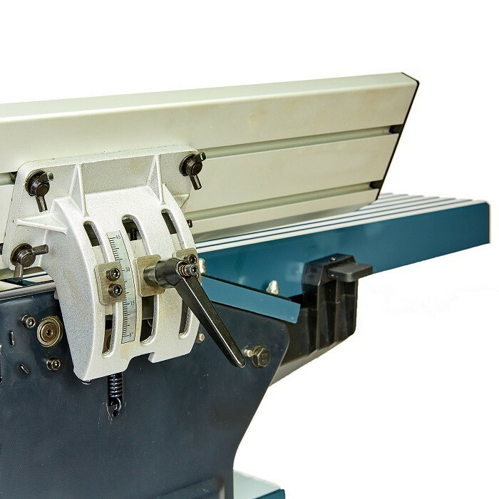 Фуговально-рейсмусовый станок TITAN PFRS12 – комбинированное оборудование для деревообрабатывающих операций. Данным агрегатом можно доводить размеры до точных параметров, корректировать геометрию заготовок, выравнивать поверхности путем удаления верхнего слоя, придавать нужную форму и простругивать деревянные предметы. Особенности фуговально-рейсмусового станка TITAN PFRS12: Комбинированный стругальный станок 2 в 1; Прочная металлическая конструкция; Простое управление и высокая производительность; Два ножа для точного, гладкого строгания; Регулируемый фуговальный упор; Регулируемое ограждение ножевого вала; Массивная строгальная станина; Фуговальный упор из алюминиевого профиля; Регулирование высоты строгания вращающейся рукояткой; Ременная передача способствует снижению шума во время эксплуатации; Компактный настольный дизайн удобно подходит для небольших мастерских; Шлифованная столешница обеспечивает точное, гладкое и прямое строгание; Модель отличается простотой в эксплуатации и не требует специального технического обслуживания; Специальный магнитный выключатель предотвращает случайное включение после временного отсутствия электричества; В зависимости от операции, патрубок пылесборника легко устанавливается в необходимое положение, обеспечивая чистоту рабочего места. Комплект поставки: Фуговально-рейсмусовый станок TITAN PFRS12; Инструкция по эксплуатации; Гарантийный талон; Упаковка – картонная коробка. ХарактеристикиПроизводитель:TITANНапряжение питания:230 ВтЧастота тока:50 ГцМаксимальная мощность:1800 ВтЧастота холостого хода:9500 об/минКоличество ножей:2Максимальная ширина строгания:305 ммГлубина строгания за один проход:0 – 2 ммМаксимальная высота заготовки при рейсе:160 ммДиаметр патрубка для отвода стружки:100 ммУгол наклона параллельного упора:45 – 90°Размер параллельного упора:610 х 127 ммРазмер рейсмусового стола:500 x 305 ммРазмер строгальных столов:1075 х 310 ммВес нетто/брутто:42 / 46 кгГарантия12 месяцев