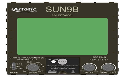 Мы недавно разработали две модели (SUN9A и SUN9B), которые с ручкой внутреннего набора для тени, чувствительности и времени задержки. Обе модели с диапазоном полной тени 4 / 4-8 / 9-13 и подходят для всех видов высокого и низкого тока сварки. Они новый на рынке, мы действительно надеемся, представить их на ваш рынок. SUN9B это с большей площадью обзора 100x65mm, здесь мы прикрепили их картину фильтров и шлем картины & технической спецификации для вашей справки. Sun9A это со стандартным область просмотра 98X43mm, его другая техническая спецификация такой же, как одного из SUN9B. Вы также можете проверить его фильтра изображение и шлем картину.
