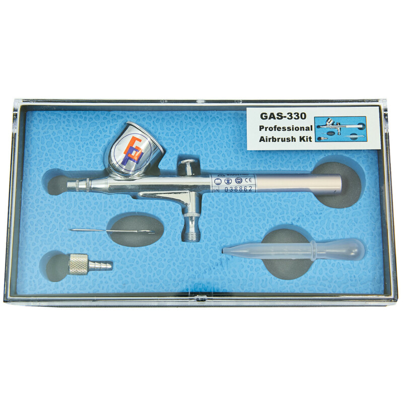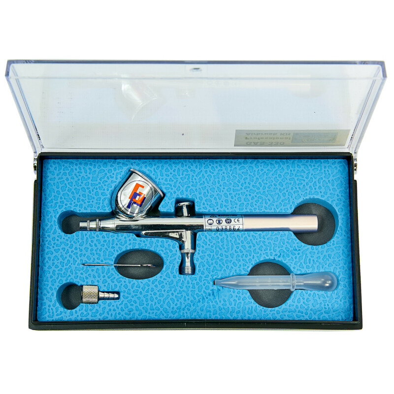 Аэрограф GISON GAS-330 Описание товара: Аэрограф GISON GAS-330 - это первоклассный инструмент для профессионалов своего дела. Его металлический стальной корпус разрабатывался таким образом, чтобы не доставлять вам и малейшего дискомфорта во время работы. Имеет верхнюю подачу краски, что очень практично при нестабильном давлении. Нанесение краски производится благодаря кнопочному управлению. Выходное сопло имеет такое строение, что краска не разбрызгивается по сторонам, а ложиться именно так, как вам нужно. Что и говорить этот прибор заставляет в себя влюбиться уже через пару минут работы с ним. Область применения: Применяют такой аэрограф те кто имеет дело с росписью на автомобилях, на фарфоре, нанесение рисунков на стене, дизайнерское оформление, а также многое другое. Особенности и возможности: Практичное расположение бочка; Очень удобное строение корпуса; Простота в применении; Регулировка подачи краски; Деликатное нанесение. Технические характеристики: Диаметр сопла: 0.3 мм Объём ёмкости под краску: 7 мл Подача краски: верхняя Размер штуцера: 1/8" Тип управления: двойное, независимое