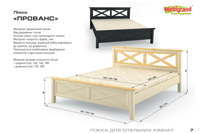 Внимание, во избежание недоразумений, перед заказом товара, просьба уточнять цену и наличие! Кровать Прованс: Материал: Деревянный массив Вид дерева: Сосна Основание кровати: Гнутые ортопедические ламели Материал покрытия: Краска, лак Возможные размеры спального места: Ширина (см): 140, 160, 180 Длина (см): 200 ВНИМАНИЕ: Матрас в стоимость не входит Цена указана за размер 160х200 в самой дешевой категории цвета (1 из 5) Все остальные вопросы уточняйте у менеджера