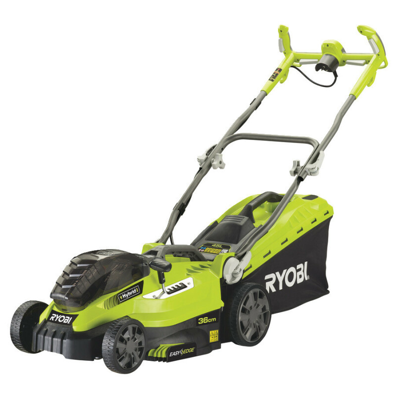 RYOBI RLM18C36H2 Гибридная (аккумуляторная и электрическая) газонокосилка, ширина скашивания 36см (2 x 2,5 Ач)