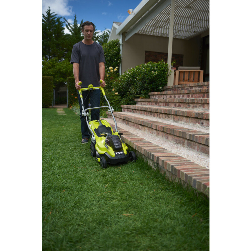 Інтернет-магазин megapega.com.ua - Інструмент і Мебель великий вибір товара по низьким цінам\\RYOBI RLM18C36H2 Гибридная (аккумуляторная и электрическая) газонокосилка, ширина скашивания 36см (2 x 2,5 Ач)