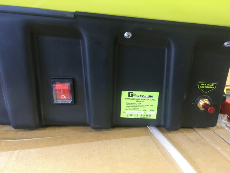 Газовая Напряжение питания: 220 Вольт. Номинальная тепловая мощность: 50000 Ватт. Производительность по воздуху: 900 м3 в час. Тип топлива: пропан, бутан. Температура потока: 360оС. Допустимое давление газа: 1.5 бар. Диаметр топливной форсунки: 1,4 мм. Потребление топлива: 3.6 литров в час. Вес нетто: 7.9 кг. Комплектация пушка редуктор шланг 1,5метров кабель питания инструкция встроенный термостат Отличительные особенности камера сгорания специальной формы стабильность работы и КПД встроенный термостат, с электронной индикацией система стабилизации пламени защита от перегрева полная автономность до окончания топлива высокий класс влагозащиты позволит использовать пушку при относительно высокой влажности качественное не выгараемое покрытие корпуса высокая эфективность обогрева. Сферы применения монтаж подвесных потолков, объекты строительного и производственного типа, мастерские, сельское хозяйство, в случаях экстренного разогрева механизмов и трубопроводов