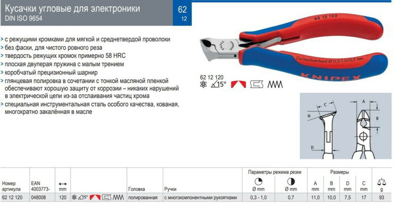 Кусачки угловые для электроники 120 мм Knipex 62 12 120