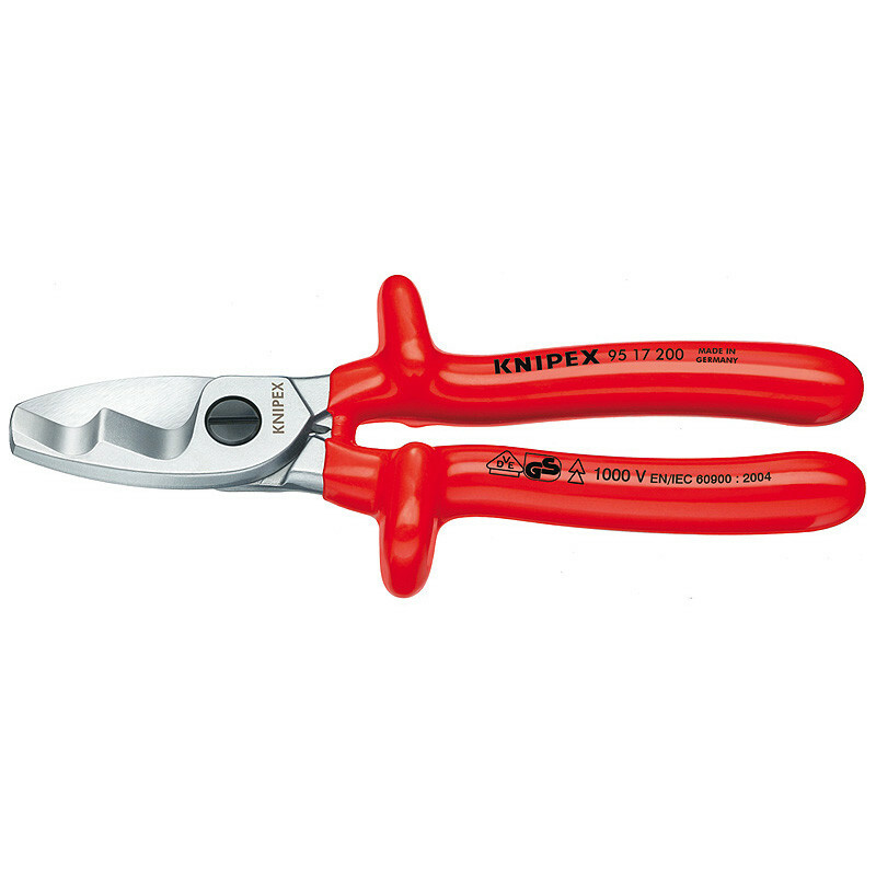Описание для резки кабеля из меди и алюминия не предназначены для резки стальной проволоки и холоднотянутых медных проводов закаленные режущие кромки с прецизионной шлифовкой Режут гладко и чисто, без деформации материала благодаря разделению процесса резки на первичный рез (изоляция в передней области резки) и вторичный рез (проводник в задней области резки) можно производить резку кабелей до Ø 20 мм одной рукой минимальная затрата сил благодаря эффективному передаточному отношению и оптимальной геометрии режущих кромок специальный механизм предотвращает случайное защемление пальцев регулируемый шарнир винтовой самофиксирующийся специальная инструментальная сталь особого качества, кованая, закалённая в масле No. 9517200 EAN 4003773026952 Инструмент хромированные Ручки с чехлами созданы методом погружения, испытаны в соответствии нормативам VDE Стандарт на изоляцию IEC 60900 DIN EN 60900 Параметры режима резки: медный кабель, многопроводный (диаметр) 20 Ø mm Параметры режима резки: медный кабель, многопроводный 70 mm² AWG 2/0 Длина 200 mm Вес нетто 360 g