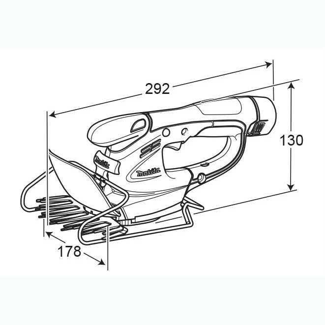 Аккумуляторные ножницы для стрижки травы Makita UM 164 DZ: преимущества Прорезиненная, эргономичная рукоятка Световой индикатор низкого уровня зарядки аккумулятора и перегрузки инструмента Питание от литий-ионного аккумулятора Блокировка выключателя от случайного запуска Прочные двойные лезвия со специальным никелированным покрытием Приблизительное время работы на одной зарядке аккумулятора 30 мин. Регулировка высоты срезания травы 10/15/25 мм Уникальный дизайн ограничителя высоты срезания травы в виде саней защищает лезвия от ударов о бордюры, и позволяет легко скользить инструменту по поверхности газона Технические характеристики Напряжение аккумулятора 10,8 В Тип аккумулятора Li-ion Частота холостого хода 2,500 мин-1 Производительность 160 мм Уровень шума: звуковое давление 75,9 дБ(А) Вибрации: холостой ход 2,5 м/сек² Размеры (Д х Ш х В) 292 x 178 x 130 мм Вес в соответствии с EPTA 1,1 кг Комплект поставки Инструкция по эксплуатации Картонная коробка Поставляется без аккумулятора, зарядного устройства