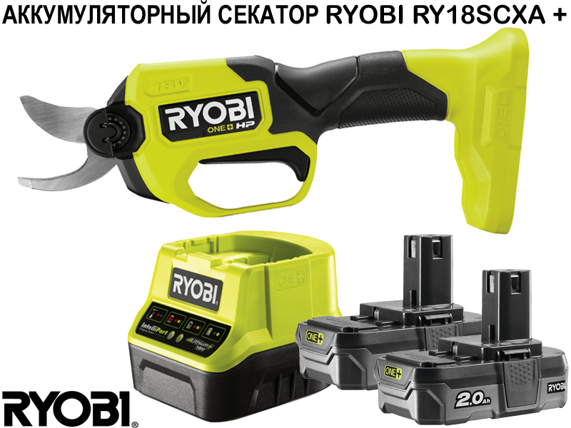 В НАБОР входит: Бесщеточный секатор RYOBI RY18SCXA + Зарядное устройство RC18120 + Аккумулятор RB18L20 (2 шт) ХАРАКТЕРИСТИКИ Бесщеточный секатор для комфортной работы при помощи одной руки Высокая режущая способность благодаря сверхострым режущим полотнам, изготовленным из стали SK5 Чистый точный рез позволяет поддерживать здоровье растения Позволяет резать ветви диаметром до 28 мм без значительных физических усилий Бесключевая система замены режущих полотен Удобная клавиша включения снижает усталость во время работы Светодиодная подсветка рабочей области облегчает работу в густом кустарнике Индикатор состояния полотен помогает поддерживать их в остром состоянии Эргономичная рукоятка с эластичным покрытием для комфортной работы и надежного хвата Высокая скорость работы, один цикл длится всего 1 с Легкий и удобный для переноски До 1500 резов с аккумулятором 1.5 Ач ОСНОВНАЯ ИНФОРМАЦИЯ Мощность 18V ПРОИЗВОДИТЕЛЬНОСТЬ Режущая способность (мм) 28 Тип лезвия Bypass BЕС Вес [без аккумулятора] [кг] 0.8 Общий вес (EPTA) (кг) 1.3