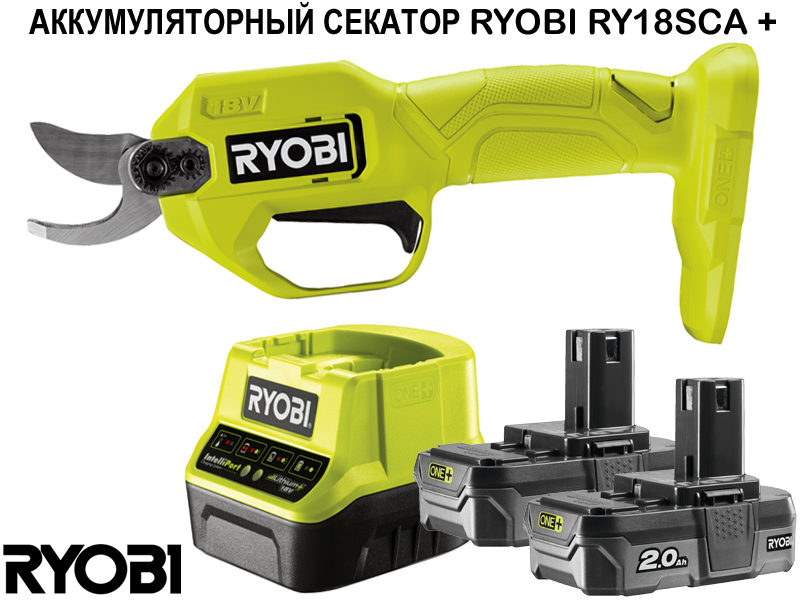В НАБОР входит: Бесщеточный секатор RYOBI RY18SCA + Зарядное устройство RC18120 + Аккумулятор RB18L20 (2 шт) ХАРАКТЕРИСТИКИ Аккумуляторный секатор для работы при помощи одной руки Высокая режущая способность благодаря сверх острым режущим полотнам из стали SK5 Чистый точный рез позволяет поддерживать здоровье растения Позволяет резать ветви диаметром до 25 мм (мягкая древесина) и до 20 мм (твердая древесина) без значительных физических усилий Легкий и удобный для переноски Удобная клавиша включения снижает усталость во время работы Высокая скорость работы, один цикл длится всего 2.5 с Для включения необходимо нажать клавишу и удерживать ее 4 секунды До 1500 резов на одной зарядке аккумулятора 1.5 Ач ОСНОВНАЯ ИНФОРМАЦИЯ Мощность 18V ПРОИЗВОДИТЕЛЬНОСТЬ Тип лезвия Охватывающее Мощность 18V Вес [без аккумулятора] [кг] 0.7 Общий вес (EPTA) (кг) 1.2