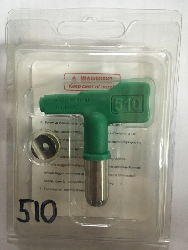 Распыляет при более низком давлении, легкая подготовка и очистка, более длительный срок службы, меньше потерь. Dino Power DP-637LPT #510 выполнено из нержавеющей стали, а наконечник из карбида вольфрама. В случае если сопло засорилось, следует повернуть сопло на 180 градусов и прочистить его под действием давления. После этого сопло снова поворачивается и работа продолжается. Сопло подходит аппаратам безвоздушной покраски с давлением до 345 бар. Краска подается от окрасочного агрегата по шлангу высокого давления в безвоздушный краскопульт, и, проходя через сопло тонкого сечения, краска распыляется, образуя красочный факел. Максимальное давление 345 бар Материал Нержавеющая сталь + хвостовик карбида вольфрама Хвостовик 11,1 мм