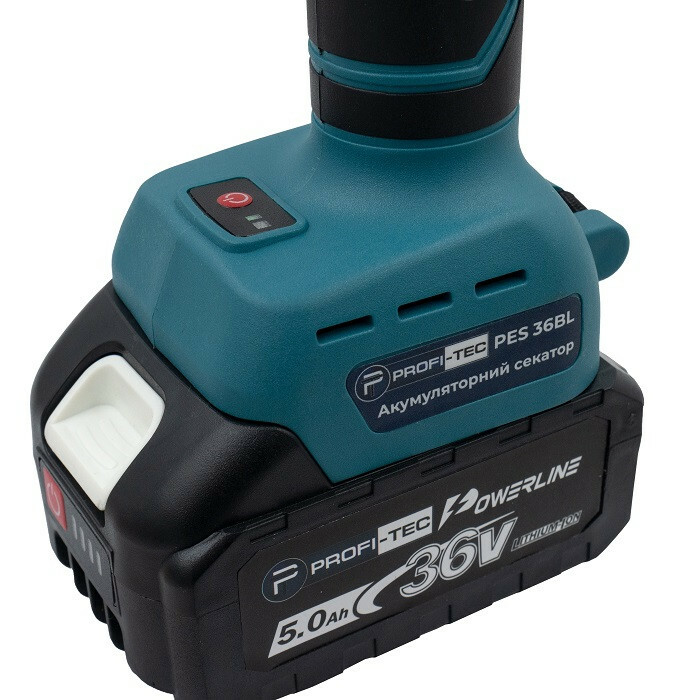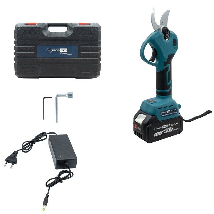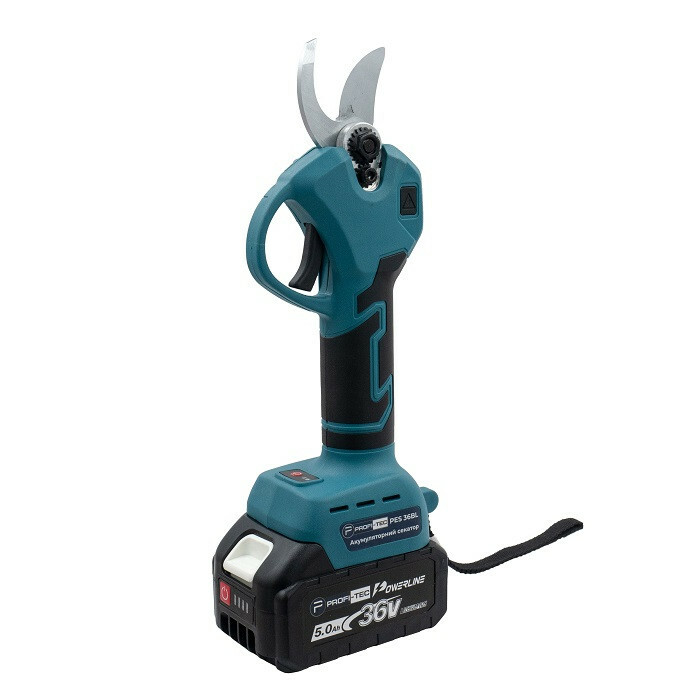 Аккумуляторный секатор PROFI-TEC PES36BL — это удобный садовый инструмент, который используется для обрезки молодых побегов. и тонких веток деревьев и кустарников, как плодовых, так и декоративных, при сборе урожая винограда, уходе за садовыми цветами и т.д. Особенности аккумуляторного секатора PROFI-TEC PES36BL: Размер режущего отверстия регулируется в двух положениях для резки разных размеров ветвей; Лезвия изготовлены из высокоуглеродистой стали, благодаря чему обеспечивают высокую режущую способность; Выносливый бесщеточный двигатель способствует стабильному выполнению интенсивных задач; Надежный хват и удобство в использовании достигается благодаря компактным размерам и прорезиненной рукоятке; Вся линейка инструментов PROFI-TEC POWERLine совместима и работает от батарей MAKITA LXT, TITAN CORE. Комплект поставки: Аккумуляторный секатор PROFI-TEC PES36BL; Зарядное устройство; Аккумуляторы 1 х 5.0 Ач; Пластиковый кейс; Инструкция по эксплуатации; Гарантийный талон. Характеристики Производитель: PROFI-TEC Тип аккумулятора: Li-Ion Напряжение аккумулятора: 36 В Тип двигателя: бесщеточный Тип ножа: односторонний Материал лезвия: высокоуглеродистая сталь Количество положений раскрытия лезвий: 2 Диаметр реза: 30/45 мм Вес с батареей 5 Ач: 1,2 кг Вес нетто / брутто: 0,56/2,6 кг Габариты брутто: 480×120×100 мм Гарантия: 12 месяцев