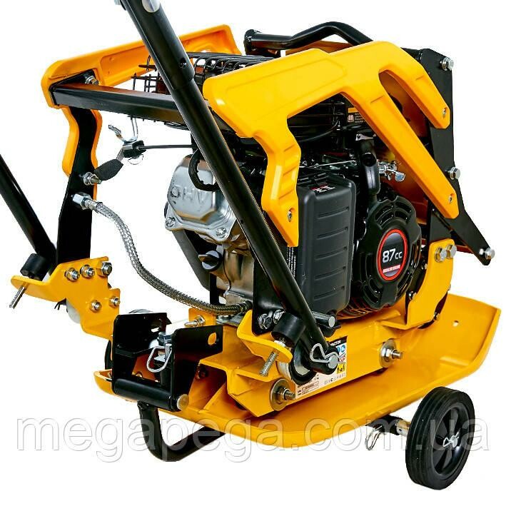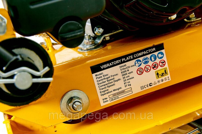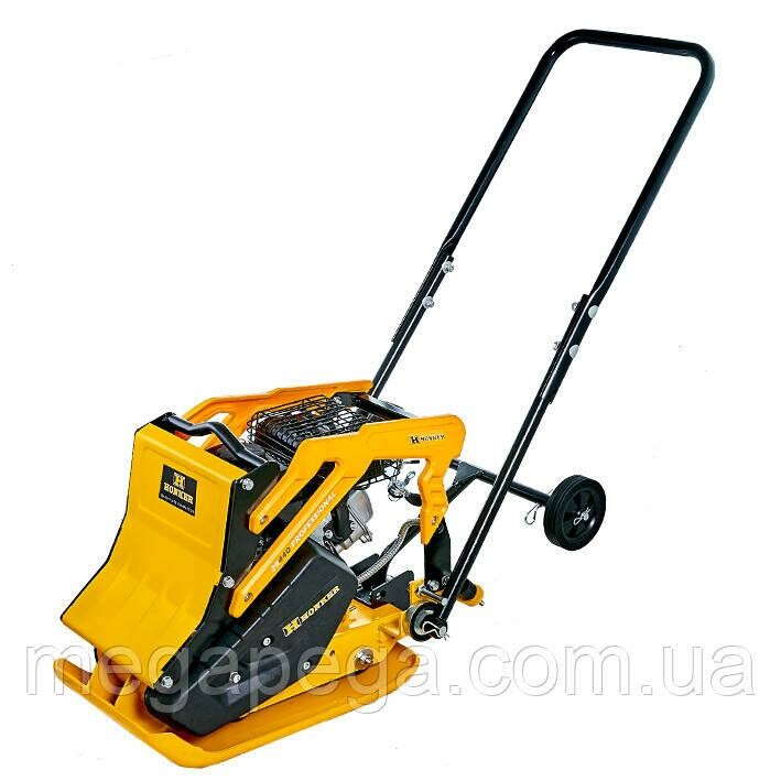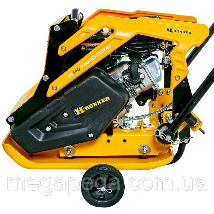 Бензиновая виброплита Honker с двигателем LONCIN 87 cc, 2.8HP, Сила уплотнения 8,2 кН, размер площадки 51x33,5, глубина уплотнения 20 см, Обороты виброблока 5900 виб\мин, скорость продвижения до 25 м/мин, вес 57кг, в комплекте транспортировочные колёса. Оснащена защитной рамой, транспортировочными колёсами для перемещения, складной ручкой для удобной транспортировки. Основание виброплиты имеет загнутые края, что позволяет избежать полос при уплотнении асфальта и изготовлено из высокопрочной стали