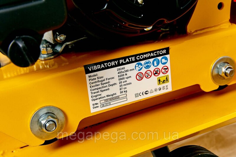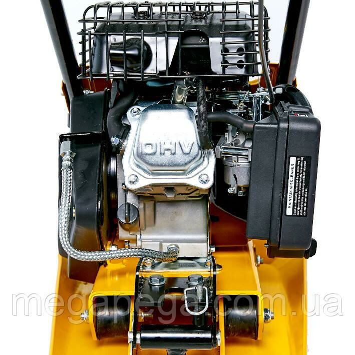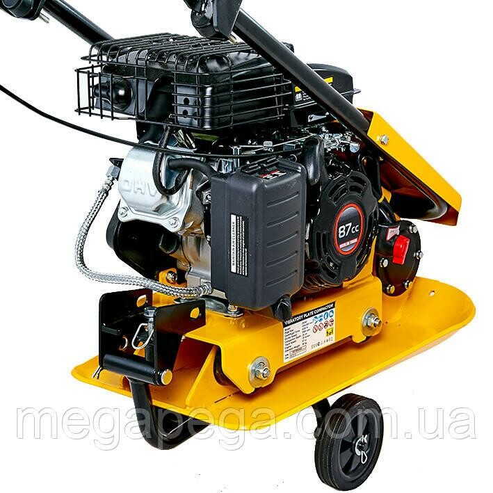 Бензиновая виброплита Honker с двигателем LONCIN 87 cc, 2.8HP, Сила уплотнения 8,2 кН,размер площадки 50x38, глубина уплотнения 20 см, Обороты виброблока 5900 виб\мин, скоость продвижения до 25 м/мин, вес 50 кг, в комплекте транспортировочные колёса