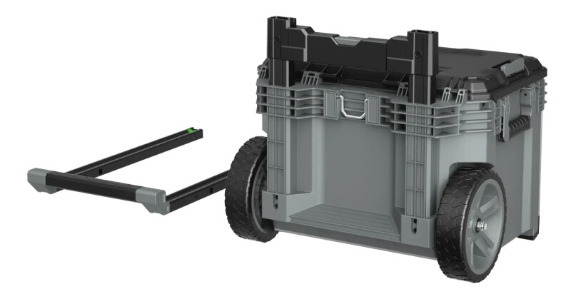 Инструменты и аксессуары можно легко транспортировать на строительную площадку с помощью надежной системы хранения и транспортировки STACK PACK. Ящики изготовлены из ударопрочного пластика с углами, усиленными алюминием, что защищает инструменты и аксессуары от самых тяжелых условий строительной площадки. Ящики имеют прочную металлическую защелку и дополнительные ручки, обеспечивающие гибкое и удобное обращение. Быстроразъемные соединения с блокировкой позволяют быстро, гибко и легко соединить отдельные коробки, чтобы систему хранения можно было собрать в соответствии с конкретными потребностями пользователя. Идеальный базовый элемент: тележка со съемной телескопической ручкой, прочными колесами диаметром 23 см и большим ящиком для переноски. Этот ящик оснащен газовыми амортизаторами, благодаря которым он остается открытым.