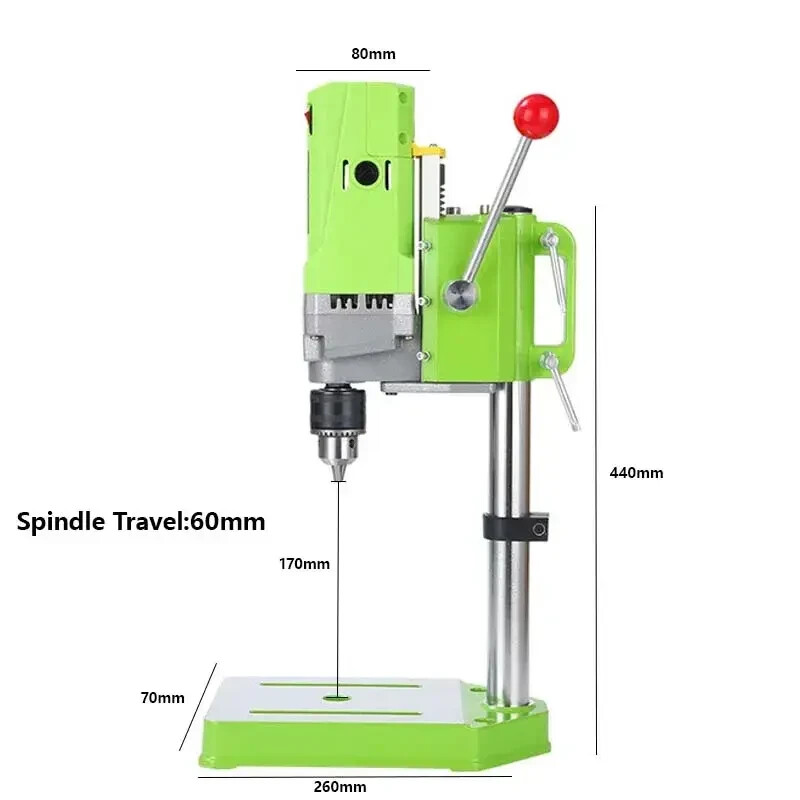 Сверлильный станок широко используется для моделирования деревянных досок, пластиковых листов, алюминия, композитных панелей, панелей из смолы, тонкого металла, печатных плат, прецизионной обработки твердых материалов и других неспецифических видов сверления. Данный станок выполнен из высококачественных материалов. В подошве есть специальные отверстия, чтоб надежно закрепить конструкцию на рабочей поверхности. Также есть отверстия для установления координатного стола или тисков. Само оборудование не имеет люфтов, что будет огромным преимуществом при выполнении точных работ. Выполнять отверстия можно в самых разных видах материалов. Установленный двигатель обладает мощностью в 710 Вт, что покажет высокую производительность работе. Удобное колесико регулировки количества оборотов поможет вам подобрать нужную частоту для определенного материала. Плавный ход ручки сделает работу максимально аккуратной. Надежные зажимы закрепят инструмент на нужной вам высоте. Установленный глубиномер поможет не только проследить за глубиной сверления, но также позволит вам установить максимальную глубину сверления. Хорошая система вентиляции не даст инструменту сильно перегреваться. Характеристика: Потребляемая мощность 710 Вт Напряжение сети 220 В Частота тока 50 Гц Число оборотов холостого хода 0 - 2800 об/мин. Патрон - диаметр 1,0-13 мм. Ход шпинделя 60 мм. Диаметр сверления - дерево до Ø 30 мм, сталь до Ø 8 мм. Рабочий радиус 125 мм. Высота стойки 440 мм. Рабочий стол 170х185 мм. Размер коробки 320х25х400 мм. Комплектация: станок сверлильный Beking BG-5156E упаковка коробка