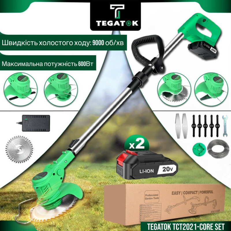 Інтернет-магазин megapega.com.ua - Інструмент і Мебель великий вибір товара по низьким цінам\\Аккумуляторный триммер TEGATOK TCT2021 SYSTEM CORE 21 SET