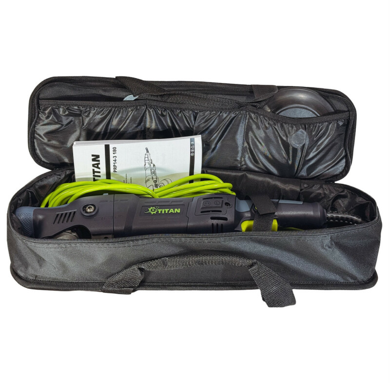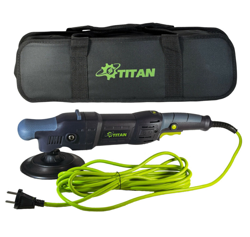 TITAN Профессиональная серия Полировальная машина TITAN PRP 14-3 180 Технические характеристики Мощность двигателя – 1200Вт. Напряжение – 230В/50Гц. Частота вращения без погрузки – 800-2500 об/мин. Диаметр подошвы – 150мм. (Макс. 180мм) Резьба шпинделя – М14 Кабель – 6 м. Габаритные размеры 420х140х125мм. Вес без кабеля питания – 2,5 кг. Преимущества ● Ротационная полировальная машина TITAN PRP 14-3 180 – это мощный инструмент, предназначенный для профессионалов в области ухода и реставрации лакокрасочных покрытий. С уникальными характеристиками и высокой производительностью, эта модель идеально подходит для полировки автомобилей, лодок и мебели. ● Повышенная мощность двигателя (1200Вт) и двухступенчатый редуктор, что позволяет увеличить производительность и длительность непрерывной работы. ● Для обеспечения стабильной работы инструмента под нагрузкой он оснащен системой охлаждения двигателя и редуктора. Струя отходящего воздуха не мешает пользователю. ● VTC контроллер - функция плавного пуска и контроля стабильной частоты вращения без падения мощности. ● Функция защиты от непреднамеренного запуска. ● Небольшой вес всего 2,0 кг (с кабелем питания 2,5 кг) позволяет долго и комфортно работать. ● Профессиональный неопреновый кабель длиной 6 м, не оставляет следов на лакокрасочном покрытии и обеспечивает оптимальный радиус действия. ● Быстрая замена щеток без инструментов. ● Эргономичный дизайн с оптимальной для хвата формой рукоятей с нескользящими накладками, не скользит в руке и гасит вибрацию. ● Благодаря плоской форме головки редуктора расстояние до поверхности сокращается, что позволяет уверенно управлять устройством в любом положении. ● Машина поставляется в удобной фирменной сумке с карманами для хранения аксессуаров. Комплектация ● Полировальная машина TITAN PRP 14-3 180 - 1шт. ● Подошва 150мм – 1 шт. ● Ключ – 1шт. ● Сумка для переноски и хранения - 1шт. ● Инструкция по эксплуатации – 1шт. Вывод Полировальная машина TITAN PRP 14-3 180 – это надежный помощник в мире полировки и ухода за транспортными средствами. С ее помощью вы сможете добиться профессиональных результатов, не выходя из собственного гаража. Не упустите возможность сделать ваш автомобиль безупречным!
