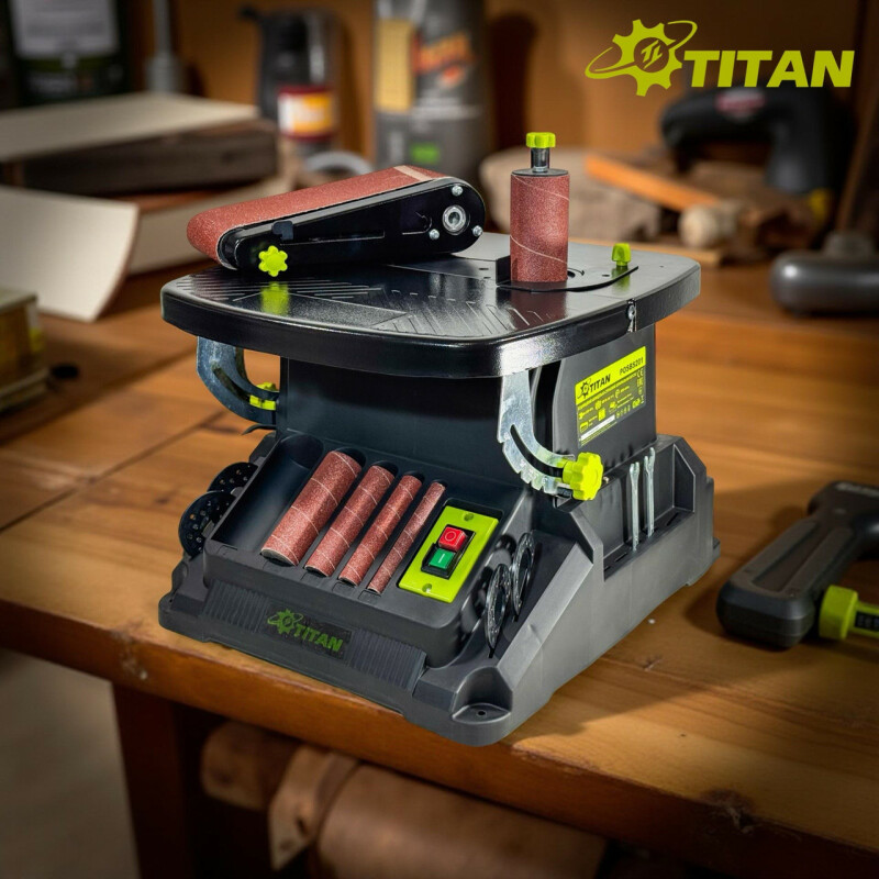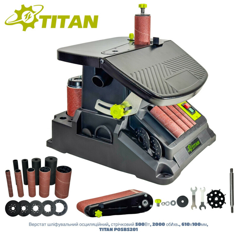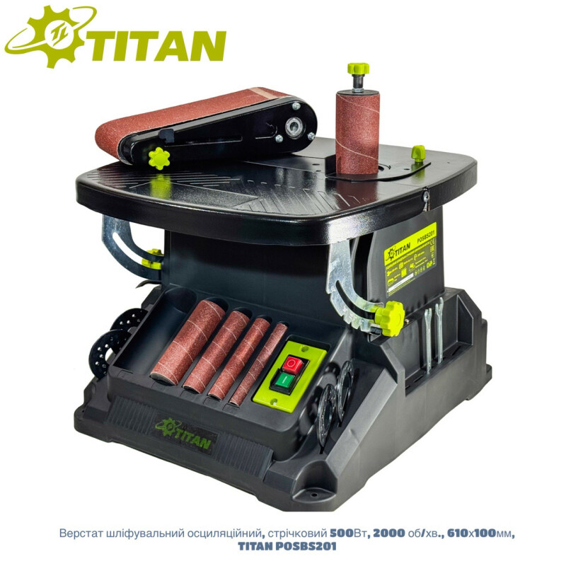 Інтернет-магазин megapega.com.ua - Інструмент і Мебель великий вибір товара по низьким цінам\\Осциллирующий+ленточный(610х100мм) шпиндельный шлифовальный станок TITAN POSBS201