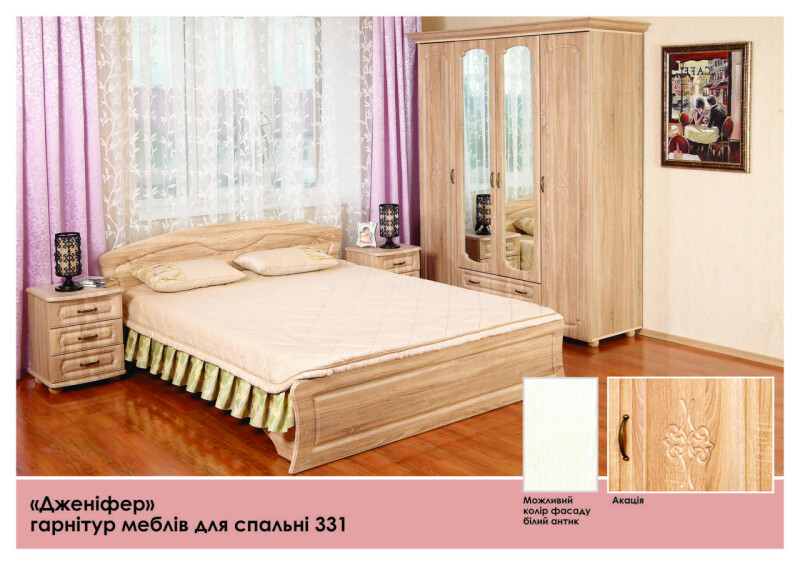 В связи с нестабильностью курса, а так же частыми повышениями цен на фабрике, просьба уточнять цены. Дополнительная информация: Петли с газовыми амортизаторами Телескопические направляющие Ручки с бронзовым напылением Наименование: Размер (ШхВхГ): Цвет: Цена: Шкаф Дженифер Ш-1615 1720х2130х630 1. Орех итальянский 10250 грн 2. Акация 10250 грн 3. Белый антик 11090 грн
