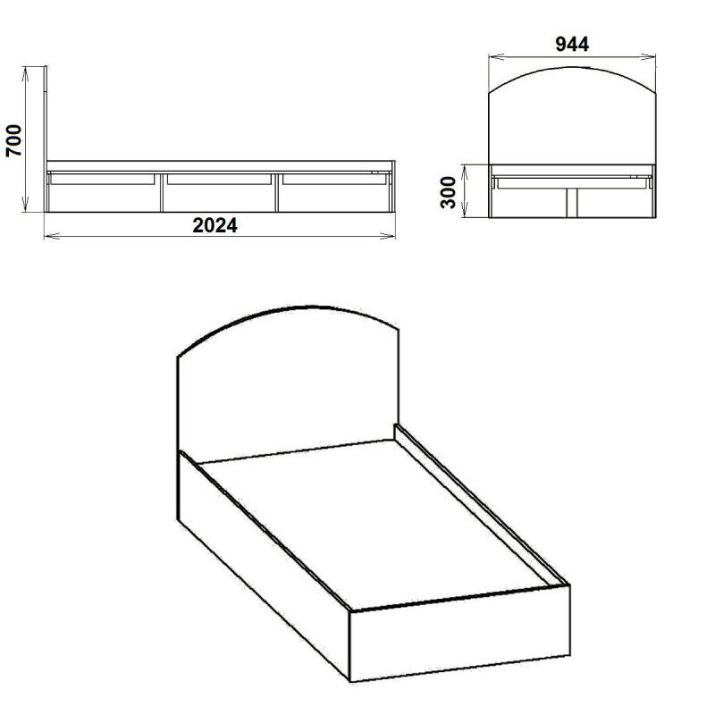 Внимание, во избежание недоразумений, перед заказом товара, просьба уточнять цену и наличие! Наименование: Размер: (ШхВхГ): Кровать-90 944х850х2042 Цвет: