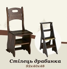 В связи с нестабильностью курса, а так же частыми повышениями цен на фабрике, просьба уточнять цены. С Уважением Интернет-магазин - mebel1.od.ua Наименование: Размер (ШхВхГ): Цвет: Стул-лестница 480х920х400 1. Красное дерево 2. Белый + 20% к цене 3. Ольха 4. Дуб 5. Натуральный 6. Орех 7. Венге тёмный + 10% к цене 8. Серый + 10% к цене 9. Ваниль + 20 % к цене