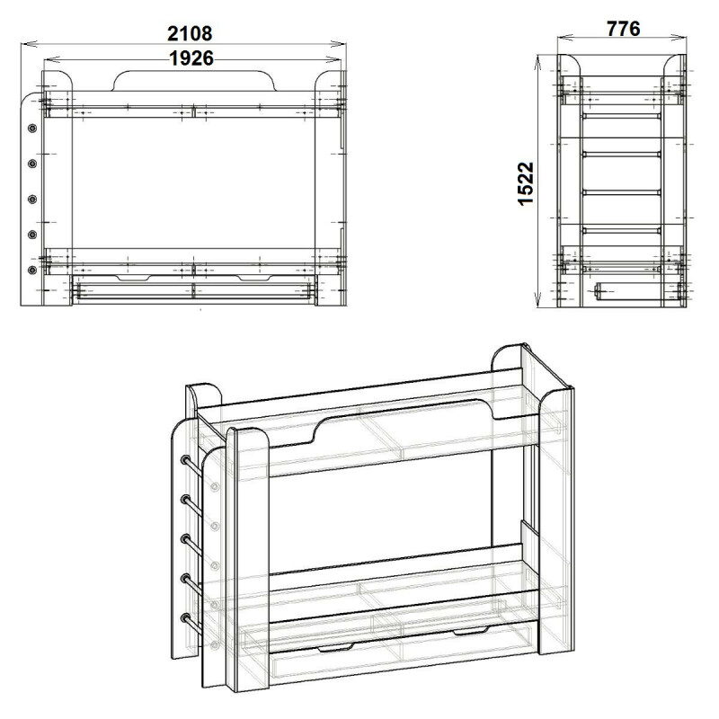 В связи с нестабильностью курса, а так же частыми повышениями цен на фабрике, просьба уточнять цены. С Уважением Интернет-магазин - mebel1.od.ua Наименование: Размер (ШхВхГ): Кровать "Твикс" 776х1522х2108 Возможность сборки как левой, так и правой стороны Проем под матрас: 1910х708х94(224) мм Пространство от нижнего до верхнего спального места: 850 мм Возможные цвета:
