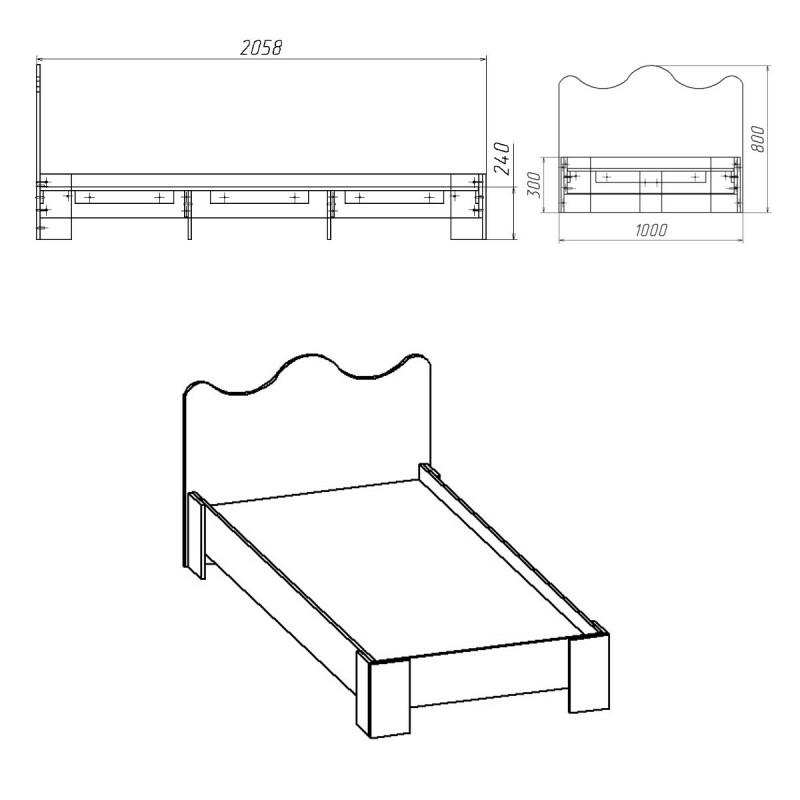 Внимание, во избежание недоразумений, перед заказом товара, просьба уточнять цену и наличие! Наименование: Размер: (ШхВхГ): Кровать-100 МДФ 1000х800х2058 Цвет: