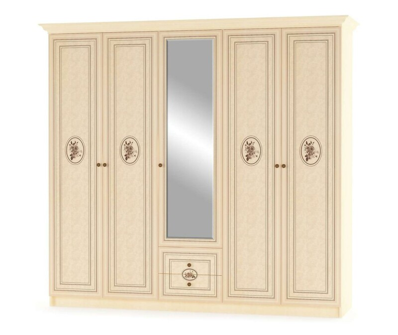 В связи с нестабильностью курса, а также частыми повышениями цен, просьба уточнять цены. Шкаф 5Д Флорис имеет четыре двери, две из которых с зеркалами. Выполнен в классическом стиле. Шкаф Флорис - элемент из модульной системы, который можно приобрести отдельно. Шкаф замечательно впишется в Ваш интерьер в классическом стиле. Основным украшением шкафа являются ящики и рисунок на фасадах. Вся мебель изготовлена из экологически чистых и безопасных материалов. Мебель идет в разобранном виде, упакована по пачкам. В комплекте идет инструкция по сборке. Характеристики: Корпус ― ламинированное ДСП, Фасады ― МДФ Высота ― 2125 мм, Глубина ― 584 мм, Ширина ― 2274 мм Цвета: Клен