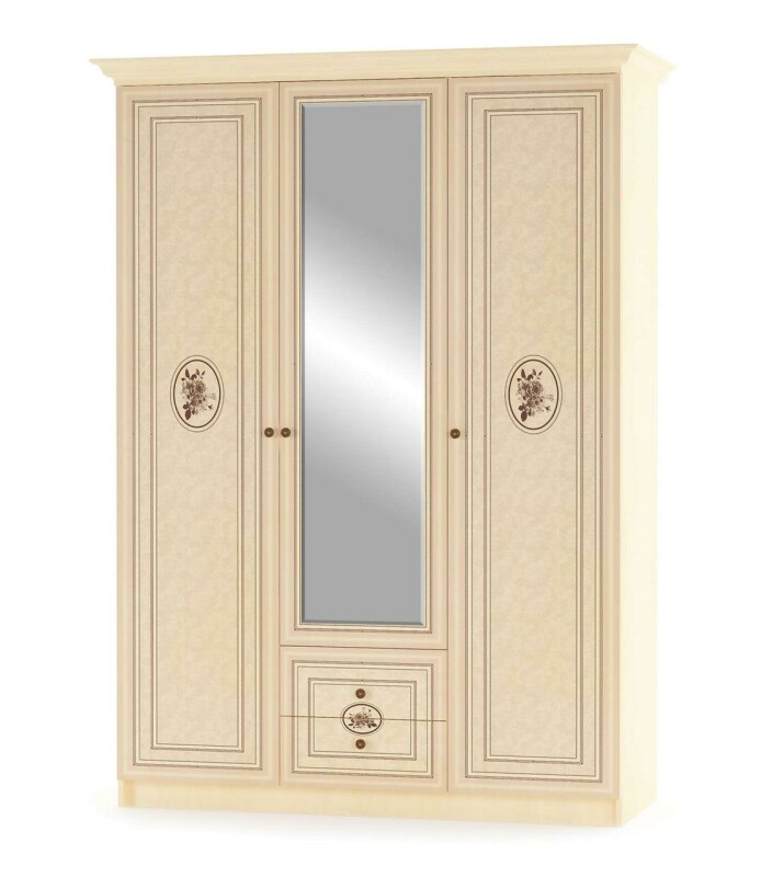 В связи с нестабильностью курса, а также частыми повышениями цен, просьба уточнять цены. Шкаф 3Д Флорис имеет три двери, две из которых с зеркалами. Выполнен в классическом стиле. Шкаф Флорис - элемент из модульной системы, который можно приобрести отдельно. Шкаф замечательно впишется в Ваш интерьер в классическом стиле. Основным украшением шкафа являются ящики и рисунок на фасадах. Вся мебель изготовлена из экологически чистых и безопасных материалов. Мебель идет в разобранном виде, упакована по пачкам. В комплекте идет инструкция по сборке. Характеристики: Корпус ― ламинированное ДСП, Фасады ― МДФ Высота ― 2125 мм, Глубина ― 584 мм, Ширина ― 1500 мм Цвета: Клен