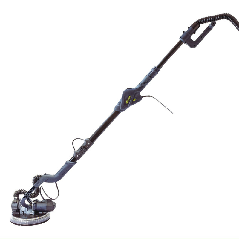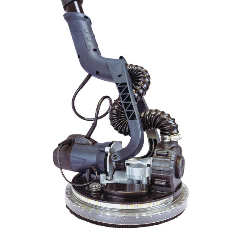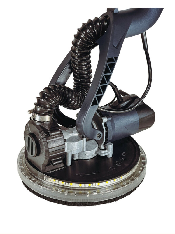 TITAN Профессиональная серия Телескопическая шлифмашина PTSM80230LC Технические характеристики Мощность: 750 Вт. Напряжение – 220В/50ГЦ Частота вращения на холостом ходу 800-1700 об/мин. Диаметр шлифовальной тарелки – 225мм. Диаметр наждачной бумаги – 230мм. Сменная длина штока: 1100-1600мм. Длина кабеля 4м. Вес: 4,3 кг Преимущества ● Профессиональная, телескопическая шлифмашина для гипсокартона Titan PTSM80230LC с мощным двигателем, идеально подходит для шлифования стен и потолков. С помощью регулятора скорости инструмент можно оптимально настроить для работы. ● Небольшой вес (4,5 кг) облегчает процесс работы и способствует эффективной и быстрой отделке стен и потолков. ● Встроенная система удаления пыли с мешком для сбора, чтобы рабочее место всегда было чистым, также шлифмашина имеет подключение к пылесосу. ● Гибкая шлифовальная головка с поворотом на 360° позволяет инструменту легко следовать движениям оператора и дотянуться до поверхности под разными углами. ● По периметру подошвы встроена надежная светодиодная подсветка. ● Телескопический шток позволяет работать без дополнительных лесов стоя на полу, длина изменяющегося штока 110-170см (с учетом роста оператора высота обработки может достигать 4м). ● Эргономичный дизайн с мягкой прорезиненной ручкой обеспечивает уверенный хват и снижает вибрацию. Комплектация ● Шлифовальная машина для стен и потолка Titan PTSM85230LC со светодиодным кольцом. ● Шлифовальная головка (установленная на машине). ● Всасывающий шланг – 1шт. ● Крепление кабеля на шланг – 6шт. ● Мешок для сбора пыли – 1шт. ● Адаптер для шланга - 1шт. ● Наждачная бумага (круглая) - 6шт. ● Запасные щетки – 1шт. ● Кейс транспортировки. ● Инструкция по эксплуатации.