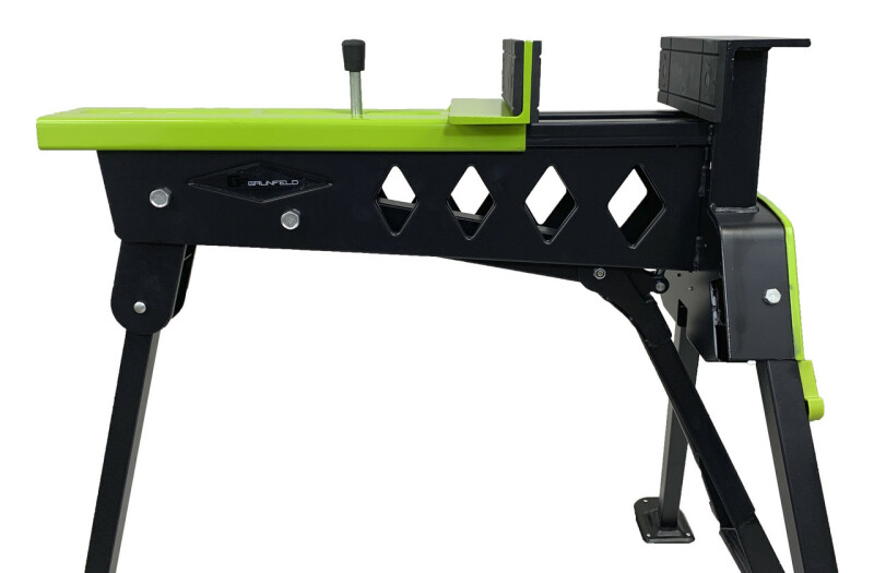 Стол-тиски Grunfeld JC1000 предназначен для надежного крепления чего-либо. Верстак имеет прочную и устойчивую металлическую конструкцию, которая выдерживает большие нагрузки, такие как удары молотка, кувалды, а также легких порезов от электроинструмента. Зажим обрабатываемой детали происходит за счет педали, которая при легком нажатии ноги зажимает деталь сильнее. Прижимной силы хватает чтобы при обработке деталь не выскользнула из тисков. На рабочем столе имеются отверстия, в которых можно хранить различный инструмент.Grunfeld JC-1000 имеет 3 выдвижные ножки, которые делают стол более устойчивым, а для удобного хранения или транспортировки складываются. Подвижная часть захвата может быть перевёрнута (реверс) для работы с крупногабаритными заготовками. Технические характеристики: Максимальная длина зажимаемой детали: 0-1700 мм. Максимальное усилия зажима: 1000 кг. Максимальная нагрузка: 272 кг. Управление зажимом: при помощи педали Габариты в сложенном виде: 736х355х330 мм Габариты в рабочем состоянии: 990х990х863 мм. Вес: 19,5 кг.