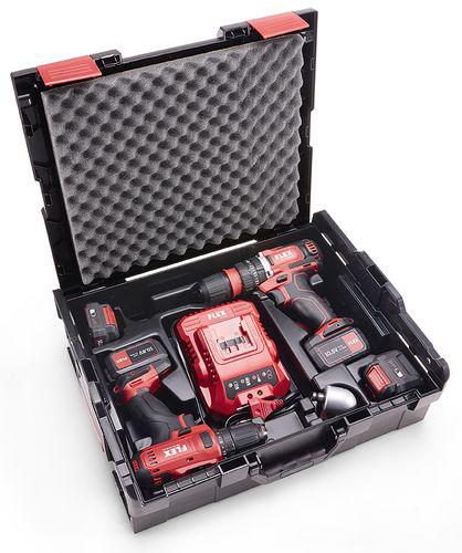 Electronic Management System (EMS) защищает инструмент, продлевает срок службы и повышает эффективность Бесщеточный двигатель с высоким КПД и длительным сроком службы Переключатель ускорения с функцией блокировки Быстродействующий электронный тормоз Быстрозажимной сверлильный патрон с функцией автофиксации Прочный корпус из алюминиевого литья под давлением Правый/левый ход с блокировкой включения Эргономичная, нескользящая, обрезиненная рукоятка Встроенная светодиодная подсветка с функцией задержки отключения Светодиодный индикатор емкости аккумулятора С ременной клипсой и держателем для бит Технические характеристики: Напряжение аккумулятора10,8 В Емкость аккумулятора2,5 / 4,0 / 6,0 А·ч Макс. крутящий момент мягкий/жесткий32 / 58 Нм Ступени крутящего момента20+1 Частота вращения на холостом ходу, первая скорость0-450 /мин Частота вращения на холостом ходу, вторая скорость0-1700 /мин Диапазон зажима сверлильного патрона1,5 - 13 мм Макс. диаметр сверления в стали13 мм Макс. диаметр сверления в дереве25 мм Вес без аккумулятора1,09 кг