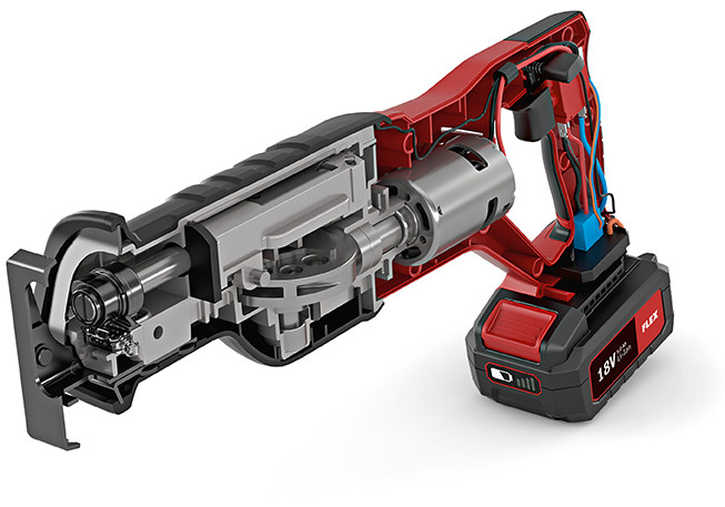 Cабельная пила Electronic Management System (EMS) защищает инструмент, продлевает срок службы и повышает эффективность Переключатель подачи газа для медленного и аккуратного запуска Быстродействующий электронный тормоз Долговечный 4-полюсный двигатель высокой мощности Маятниковый ход: с возможностью включения, для быстрого выполнения пильных работ по дереву Возможность поворота полотна на 180° Замена полотна без специальных инструментов Съемная пильная накладка с возможностью вращения и регулировки глубины Эргономичная, нескользящая, обрезиненная рукоятка Встроенная светодиодная подсветка с функцией задержки отключения Светодиодный индикатор емкости аккумулятора Аккумуляторная система FLEX: работает с любыми аккумуляторами 18 В. Поставляется без аккумулятора, Зарядное устройство Технические характеристики: Число ходов на холостом ходу0-3100 /мин Ход29 мм Напряжение аккумулятора18 В Емкость аккумулятора2,5 / 5,0 А·ч Вес без аккумулятора2,9 кг