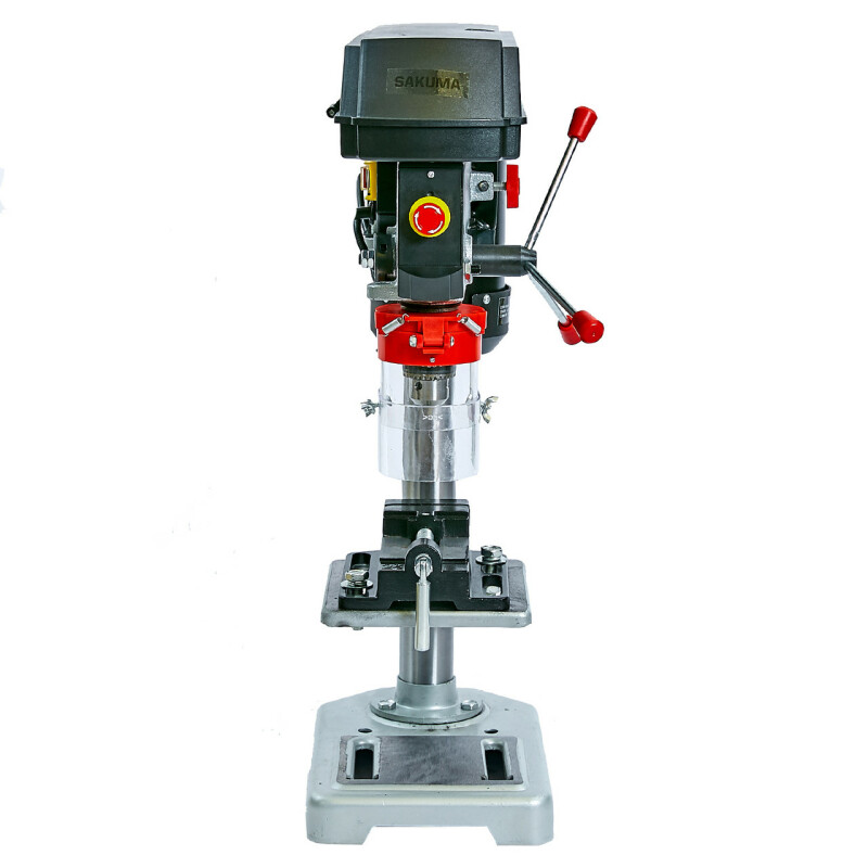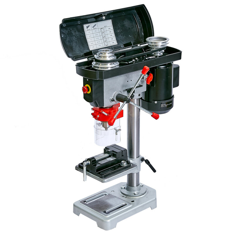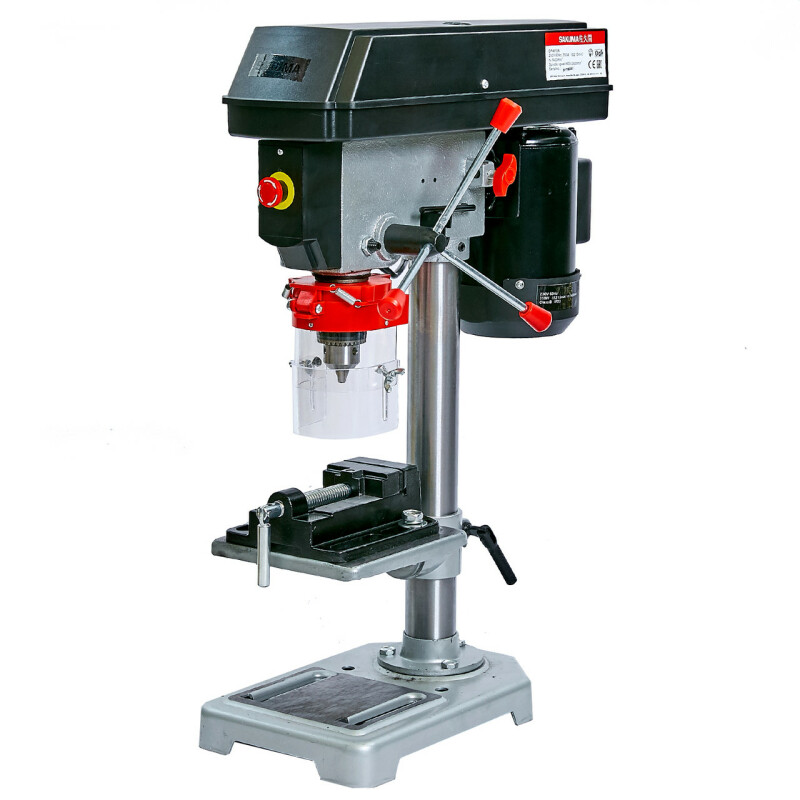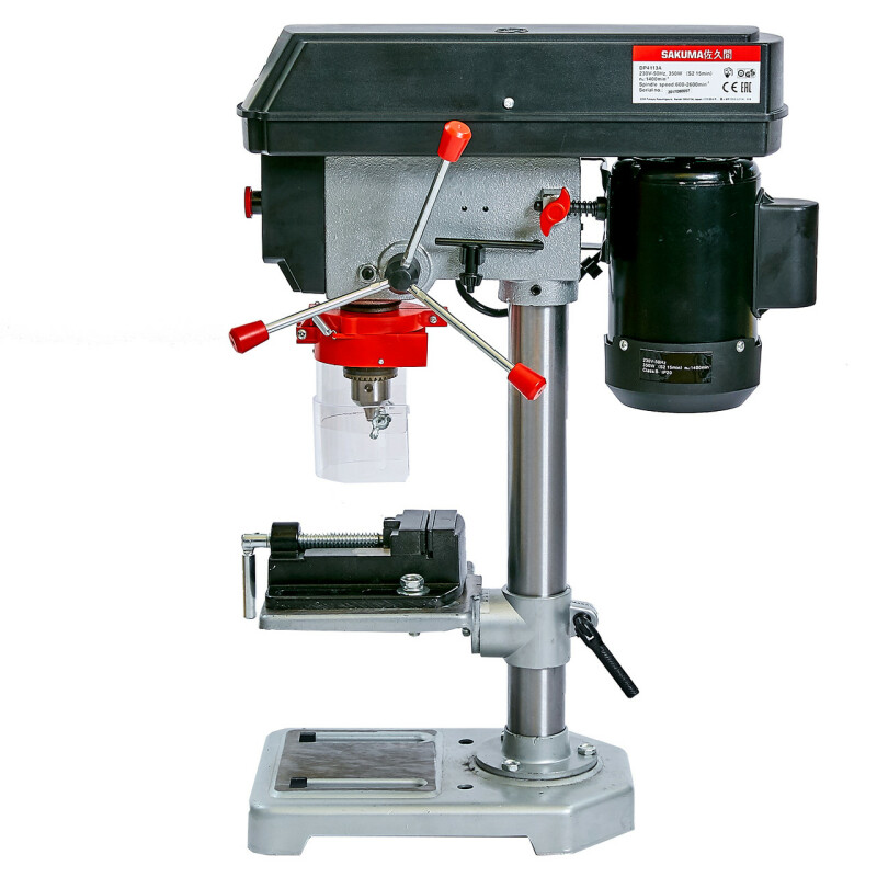 Описание товара: Сверлильный станок SAKUMA DP4113A - это инструмент бытового класса, который отлично подойдет для домашней мастерской или гаража. По вполне приемлемой цене вы получаете функциональный агрегат, позволяющий производить сверление в различных материалах, в т.ч. дереве, диаметром до 50 мм. Технические характеристики Мощность двигателя: 350 Вт Напряжение питания: 220 В Тип электродвигателя: асинхронный Число скоростей: 5 Передача: ременная Посадка патрона: В16 Диаметр сверления: 1.5-13 мм Размер рабочего стола: 160x165 мм Физические характеристики Вес: 16 кг Габариты: 580 мм