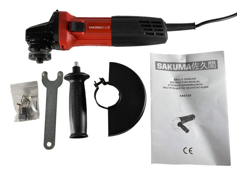 Описание и технические характеристики SAKUMA SAG125 Диаметр диска 125 мм Мощность двигателя 1000Вт Частота вращения диска 11000 об/мин Двойная изоляция есть Makita type Вес 2 кг