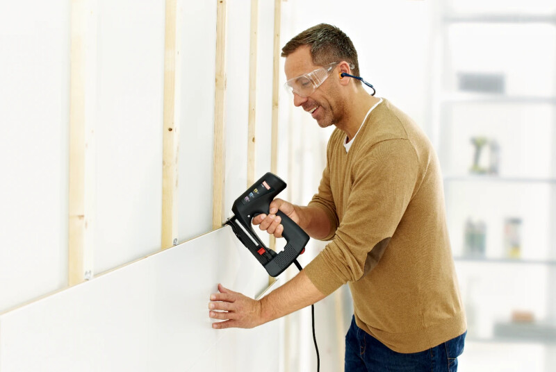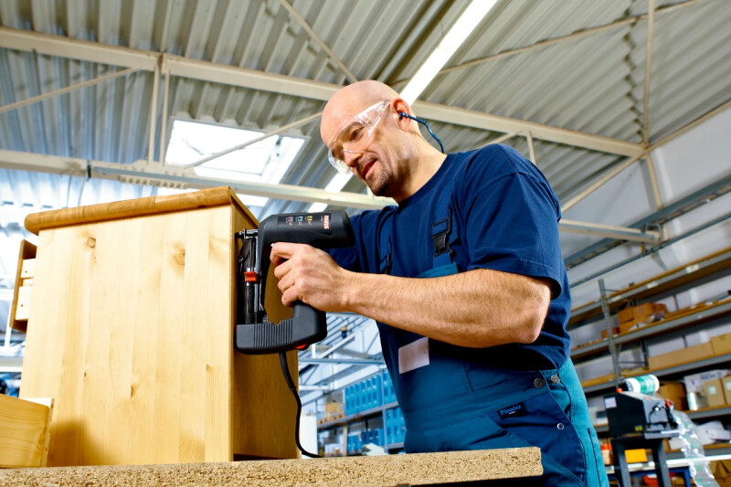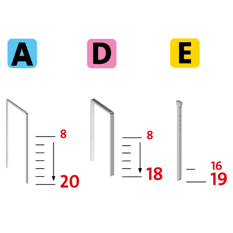 NOVUS J-165 Универсальный степлер с чрезвычайно низкой отдачей для профессиональной обивки, изоляционных работ и обшивки панелями с помощью защелок типа «шип-паз». Использует тонкопроволочные скобы длиной от 8 до 20 мм, плоскопроволочные скобы длиной от 8 до 18 мм и гвозди длиной до 19 мм. Сменная передняя пластина для регулировки при работе с тонкопроволочными скобами и гвоздями на плоскопроволочных скобах. Хорошо видимый уровень скоб. Длинный носик для точного крепления в труднодоступных местах. Защелка обеспечивает легкий доступ для быстрого устранения неисправностей. Правильная сила удара для мягкой или твердой древесины. Готов к использованию сразу после отжатия спускового крючка. Вес 2.2кг 100 x Плоская проволочная скоба D модель 53F 100 x Гвоздь E модель J 180 x Тонкая проволочная скоба A модель 53 Обрабатываемые материалы Алюминиевые ламинированные изделия Пробковые плитки (2-10 м) Декоративные молдинги / угловые молдинги Ткани/ текстиль/ обивка ДВП (2-6 мм) Изоляционный мат (стекловата) Кожа/искусственная кожа Бумага/картон Рубероид Коврики Простыни Тонкие деревянные столбики Доски с пазом и шпунтом / панели с зажимами для стен и потолка Вощеная/промасленная бумага Погодостойкая лента Проволочная сетка Особенности Экспресс-устранение неисправностей Регулятор силы удара Встроенный ползунок для скоб Функция многократного удара Сопло Окно для контроля скоб Фиксатор спускового крючка Длина кабеля в м 3,5 м Частота повторения импульсов 20 ударов/мин Напряжение сети 220 В / 50 Гц Соответствие GS Intertek Тип использования Скобозабивной пистолет для ткани Скобозабивной пистолет для гвоздей Скобозабивной пистолет для листов Скобозабивной пистолет для дерева Скобозабивной пистолет для обивки