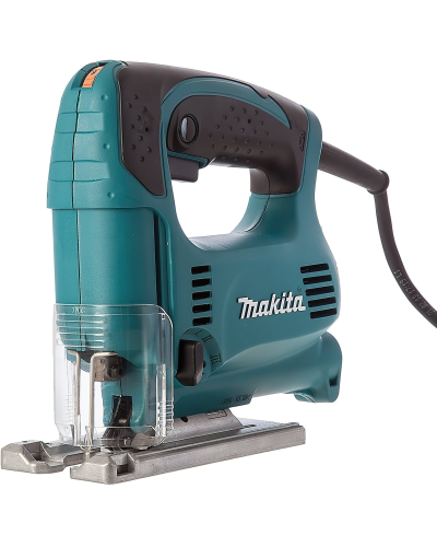 MAKITA 4329 Электронная регулировка скорости 3-х ступенчатый маятниковый ход Распиловка под углом до 45 ° в обе стороны Встроенный патрубок для пылесоса Удобная D- образная рукоятка с резиновыми вставками Без кейса Характеристики: Параметры питания инструмента Потребляемая мощность - 450 Вт Мощность выходная - 270 Вт Макс. выходная мощность - 420 Вт Тип питания инструмента - Сеть переменного тока 220 В Тип двигателя переменного тока - Универсальный коллекторный двигатель Номер щеток электродвигателя - CB-64 Рабочие параметры инструмента Ход штока - 18 мм Обороты, скорости Обороты на холостом ходу - 500 - 3100 об/мин Параметры обработки материалов Макс. глубина распила дерева (угол 90°) - 65 мм Макс. глубина распила стали (угол 90°) - 6 мм Крепление оснастки и инструмента Крепление оснастки - Полотна для лобзика / Полотна для лобзика с Т образным хвостовиком Крепление подошвы - Винт с внутренним шестигранником Крепление приспособлений - В паз на подошве 12 х 4 мм Особенности конструкции Двойная изоляция - да Электронная регулировка оборотов - да Маятниковый ход полотна - да Литая подошва со стальной вставкой - да Сфера применения Вырезание отверстий в материале без засверливания - Гипсокартон / Дерево мягкое Выпиливание криволинейное - ДСП, ДВП, ОСП, фанера / Цветные металлы / Дерево твердое / Сталь / Дерево мягкое / Ламинат, ЛДСП / Пластик армированный / Гипсокартон / Пластик термопластичный Габариты, размеры, вес Длина - 224 мм Высота - 197 мм Ширина - 77 мм Длина кабеля - 2 м Вес - 1,9 кг Описание: Электрический лобзик Makita 4329 – это профессиональный универсальный инструмент, с помощью которого можно выполнять прямые и фигурные разрезы практически в любом материале - дереве, пластике, стальном листе. Существуют пильные полотна, которыми можно резать даже керамическую плитку. Компания Makita позиционирует свои лобзики как инструменты для стройки, где не нужна идеальная точность. В силу своей конструкции лобзик не обладает идеальной точностью при пилении, а для получения точного прямого распила лучше воспользоваться дисковой пилой. Лобзик Makita 4329 в отличие от своего аналога лобзика Makita 4328 оснащается более жёсткой комбинированной опорной плитой, обеспечивающей лучшее качество пиления. Лобзик Makita 4329 сконструированы так, чтобы с ними можно было работать одной рукой. Для этого удобная ручка с клавишей включения располагается над двигателем и редуктором. При длительной работе кнопку включения можно закрепить фиксатором, расположенным на боковой части рукоятки. Рабочее изделие, подлежащее резке Число на диске регулировки Дерево 5 – 6 Мягкая сталь 3 – 6 Нержавеющая сталь 3 – 4 Алюминий 3 – 6 Пластмассы 1 – 4 Для подбора оптимальной скорости пиления у лобзика Makita 4329 имеется регулятор. Располагается он в передней части рукоятки, там до него можно дотянуться большим пальцем, не убирая руку с инструмента. Регулятор позволяет выбрать одну из шести скоростей, которая подходит для работы с нужным материалом. Число оборотов регулируется от 500 до 3100 в минуту. Узел крепления пилки с защитным стеклом и металлической защитной скобой располагается в нижней передней части лобзика. Пилка устанавливается очень легко. Достаточно открутить один винт шестигранным ключом, который располагается в задней части инструмента, и установить пилку в держатель. Электрический лобзик Makita 4329 оборудован 3-х с