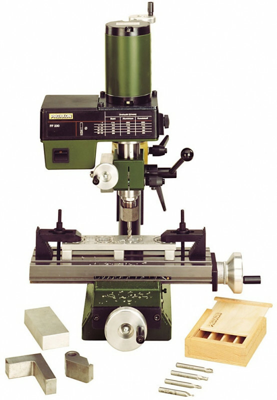 Поворотная на 360º головка со шкалой. Шпиндель имеет шкалу глубины сверления, 1 деление = 1 мм. Мощный двигатель. Передача многоклиновым ремнем обеспечивает большой крутящий момент на низких оборотах. Высокоточные д. 2,4-3,0-3,2-4,0-5,0 мм. Стальной с тремя Т – образными пазами стандарта МИКРОМОТ (12х6х5мм). Возможность жесткой фиксации фрезерной головки и шпинделя при фрезеровании. Технические данные: 220 – 240 в, 50/60 Гц, максимальная потребляемая мощность 140 Вт. Скорости вращения шпинделя: 280–550–870–1200–1500–2200 об/мин. Ход шпинделя 30 мм. Стойка 35 х 400 мм. Стол 270 х 80 мм. Ход по оси Х – 170 мм, ход по оси Y – 65 мм. Основание 180 х 130 мм. Общая высота около 500 мм. Вес около 17 кг. комплектация: 1. Головка фрезерная, компл. 2. Стойка 3. Зажимы цанговые Д 6, 8 и 10 мм, включая накидну гайку 4. Стол крестовый KT 230 5. Инструмент для обслуживания 6. Руководство по эксплуатации и правила безопасности Характеристики потребляемая мощность, Вт 140 скорость вращения шпинделя, об/мин 280-550-870-1200-1500-2200 ход подачи, мм 30 высота, мм 500 рабочий стол ширина, мм 80 рабочий стол длина, мм 270 регулировка по оси Х, мм 170 регулировка по оси Y, мм 65 вес, кг 17