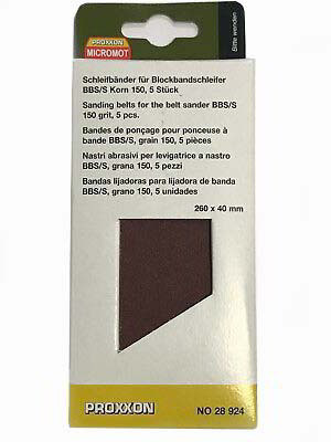 Корундовые шлифовальные ленты (оксид алюминия). На тканой основе. Для шлифования металлов, цветных металлов, дерева и пластиков. 40 х 260 мм. № 28924 зернистость К 150, упаковка 5 шт.