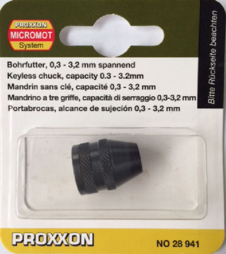 PROXXON 28941, Трехкулачковый стальной сверлильный патрон без ключа ( 0.5 - 3.2 мм)