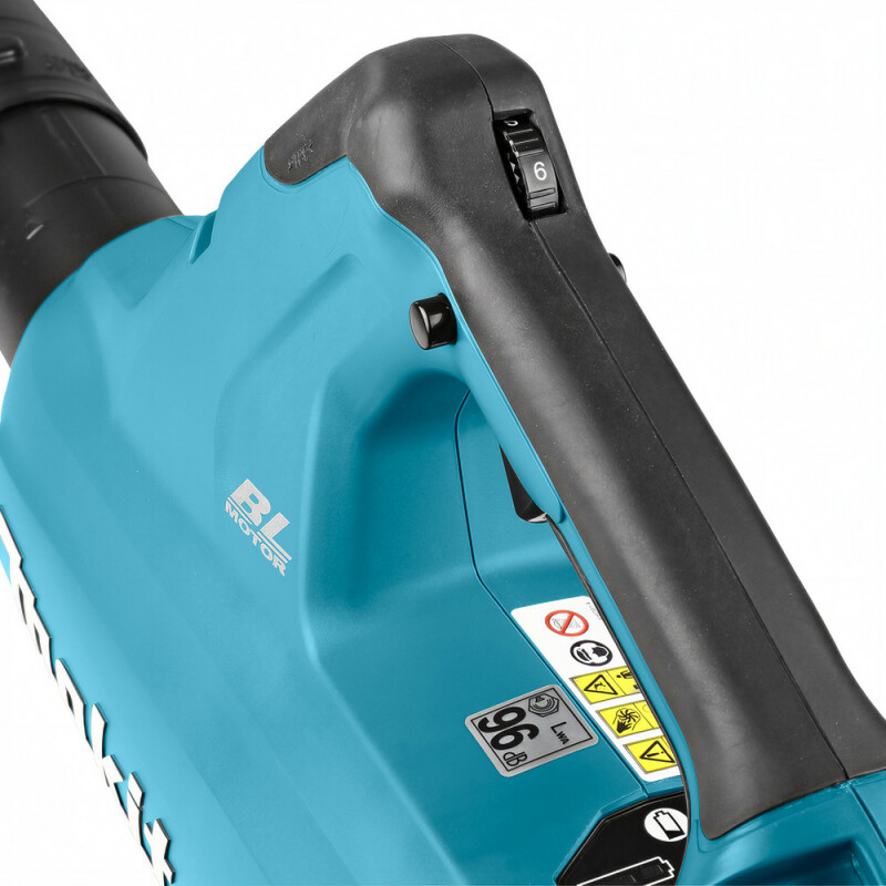 Бесщеточный двигатель и два литий-ионных аккумулятора 18 В обеспечивают более высокий объем и скорость воздуха Пылезащищенный и водоустойчивый инструмент для эффективной работы Новый бесщеточный двигатель обеспечивает более высокую мощность и производительность инструмента Регулятор числа оборотов Более низкий уровень шума Технические характеристики Напряжение аккумулятора 18 + 18 В Тип аккумулятора Li-ion Число оборотов 11.400 - 21.500 мин-1 Скорость воздушного потока 27 - 53 м/сек Максимальный объем воздуха 6,7 - 13,3 м³/мин Уровень шума: звуковое давление 75 дБ(А) Уровень шума: звуковая мощность 86 дБ(А) Вибрации: холостой ход 1,1 м/сек² Размеры (Д х Ш х В) 981 x 204 x 298 мм Вес в соответствии с EPTA 3,9 кг
