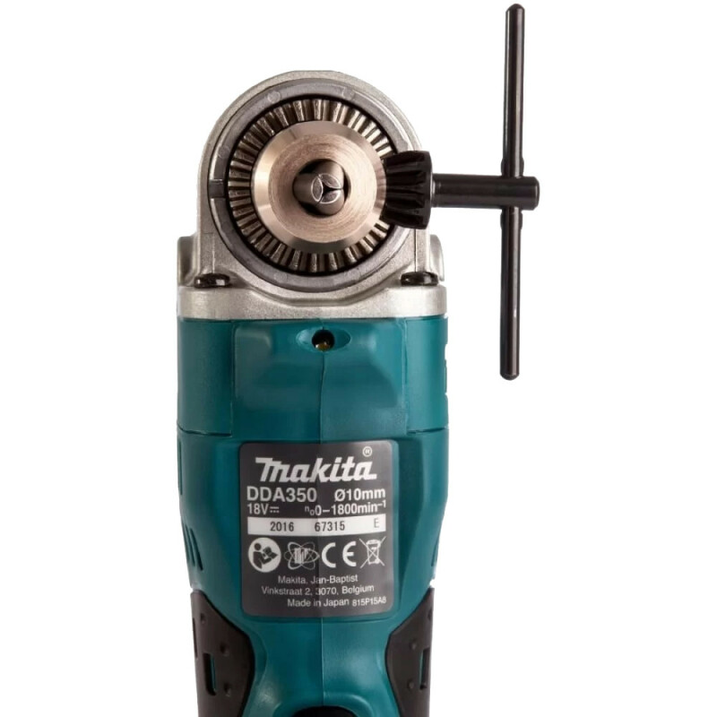 Makita DDA350Z - это профессиональная аккумуляторная угловая дрель для работы в труднодоступных местах Легкая и компактная для оптимального удобства в эксплуатации, Makita DDA350Z имеет расстояние от края редуктора до конца сверлильного патрона всего 66 мм Длительность заряжания литий-ионного аккумулятора (3,0 Ач) всего 22 минуты DDA350Z имеет систему светодиодной подсветки с функцией послесвечения Технические характеристики Напряжение аккумулятора 18 В Тип аккумулятора Li-ion Число оборотов 0 - 1,800 мин-1 Диаметр сверления (сталь) 10 мм Диаметр сверления (дерево) 25 мм Диаметр зажимного патрона 1,5 - 10 мм Уровень шума: звуковое давление 73 дБ(А) Уроень вибрации: cверление по металлу 2,5 м/сек² Размеры (Д х Ш х В) 326 x 79 x 115 мм Вес в соответствии с EPTA 1,8 кг Комплект поставки Зубчастый патрон Ключ к кулачковому патрону Боковая ручка Обратите внимание, дрель Makita DDA350Z поставляется без чемодана для транспортировки, аккумулятора и зарядного устройства