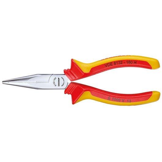 Плоскогубцы GEDORE VDE 8132-160 H, 160 мм (VDE8132-160H) Описание: Длинные, плоские круглые челюсти, прямые захватывающие лица, зазубренные. Прецизионные режущие кромки с индукционной закалкой, твердость 61 - 63 HRC. Специальная закаленная и закаленная сталь Gedore, хромированная. Ручки с изоляционными втулками VDE до 1000 В, соотв. EN 60900 / IEC 60900. Характеристики: Длина: 160 мм Ширина головки: 16,5 мм Вес: - 0,164 кг