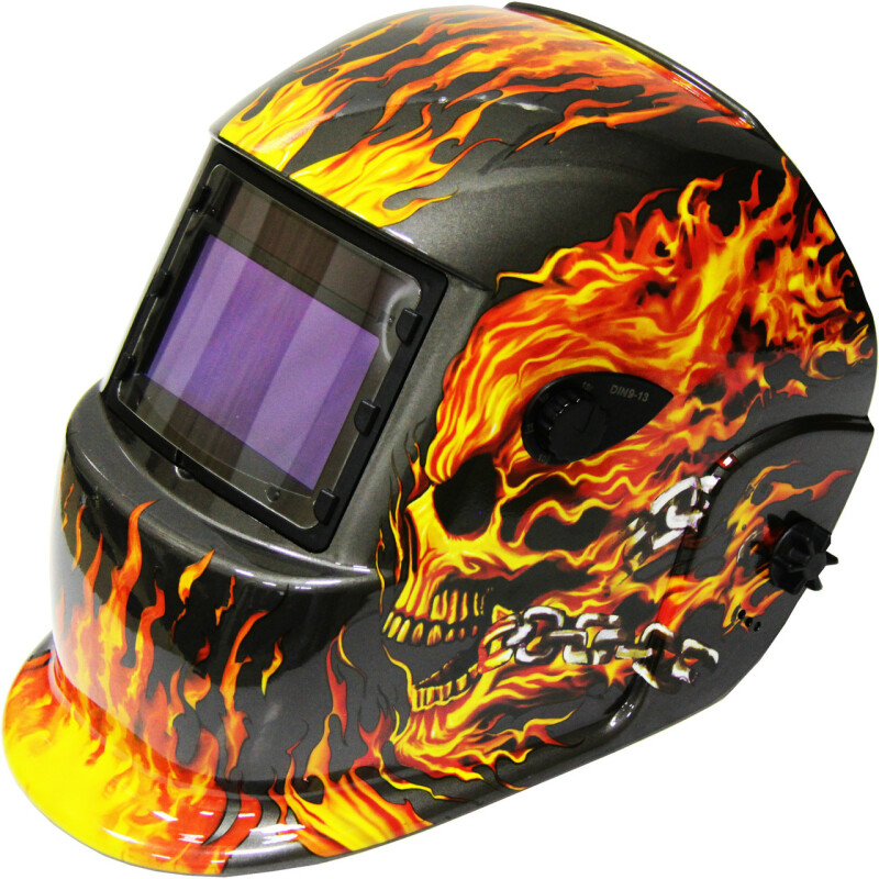 Профессиональная авто Хамелеон S777 FLAME уникальный экземпляр из бюджетной ценовой категории. Данный щиток предназначен для работы в режимах MMA и MIG-MAG и TIG, Материал Полиэтилен. Размер защитных пластин 115x90 мм. Экран оснащён 4 оптическими датчиками. Размер рабочей площади светофильтра 99х45 мм. Рабочие температуры -5 / 40 C. Время срабатывания 1/30000 секунд. Новый, большой, защитный экран маски оснащён регулировкой ступени затенённости DIN9 - DIN13, регулировкой чувствительности светофильтра, регулировкой времени перехода в светлое состояние, регулировкой перехода между режимами сварка/заточка. Солнечная батарея светофильтра, дублированная аккумуляторами, не требует замены элементов питания. Щиток сделан из высококачественного негорючего полиэтилена покрытого защитной плёнкой. Данное покрытие, а так же обтекаемая форма маски - предотвращает прилипание сварочных брызг. Регулировки наголовника позволяют изменить диаметр охвата наголовника - поворотом всего одной ручки, отрегулировать глубину посадки, переставляя пластиковые шипы в пазах, задать необходимый угол наклона щитка и усилие для опускания/поднимания маски, выставить комфортное расстояние от лица до светофильтра. Наличие мягкой налобной накладки, обилие регулировок и подстройка центра тяжести маски «хамелеон» – позволяет сварщику подогнать щиток под нужные параметры и сделать свою работу максимально комфортной. в комплекте Стекло увеличительное 2 диоптрии