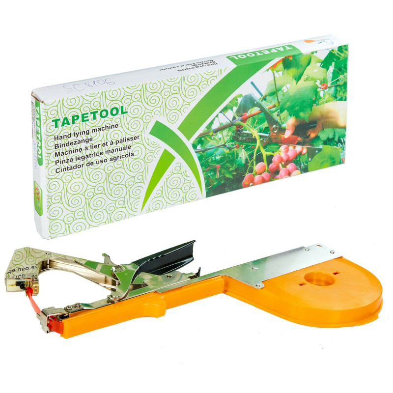 Степлер садовый подвязочный (таппенер) Sakuma SC-8106 – применяется для подвязки винограда, малины, смородины, томатов, огурцов, растений и цветов до ближайшей опоры. Степлер востребован из сада на даче и на приусадебном участке, в теплице, на винограднике, в оранжерее, в больших и небольших частных хозяйствах. Особенности степлера садового подвязочного Sakuma SC-8106: Обеспечивает надежное соединение с опорой, не травмируя стебель растения; Экономит время и силы на подвязку; Имеет защитную резиновую накладку, которая защищает основной узел степлера от случайных ударов и падений; Имеет защитное покрытие деталей от коррозии; Легкий, прочный и простой в использовании; Прост в обслуживании; Не отбрасывает кусочки ленты на землю во время работы. Подвязка растений за секунды, потому что за одно нажатие Таппенер: Охватывает растение и сопротивление лентой; Точно обрезает ленту; Закрепляет два конца ленты между собой специальной скобой. Комплект поставки: Степлер садовый подвязочный Sakuma SC-8106; Дополнительная пружина; Гарантийный талон; Инструкция по эксплуатации; Упаковка – картонная коробка; Скобы и ленты – стандартного типоразмера приобретаются отдельно. Характеристики Производитель: Sakuma Материал: сталь+пластик Назначение: для подвязки Максимальный 55 мм Наружный диаметр бункера для ленты: 85 мм Гарантия: 6 месяцев